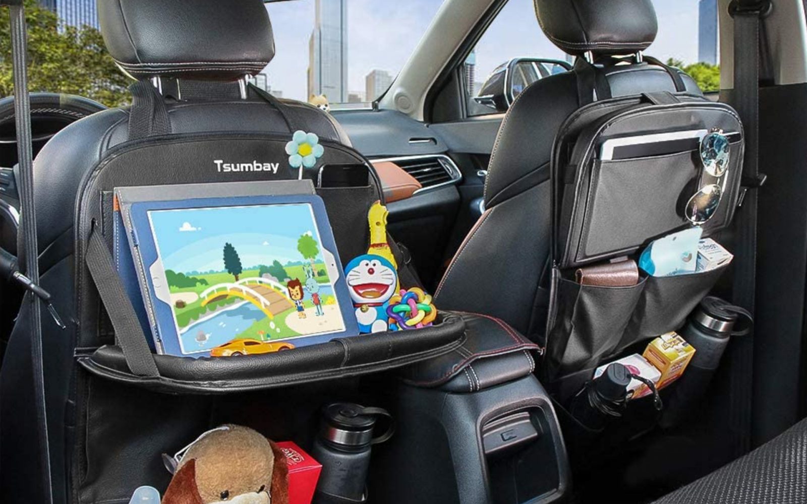 Deze tas is ideaal wanneer je reist met kinderen. Hij bevat 9 opbergzakken in verschillende maten voor eten, drinken, knuffels en speelgoed… Ook zit er een inklapbare eettafel in waar bijvoorbeeld een iPad op gezet kan worden. Hier te koop.