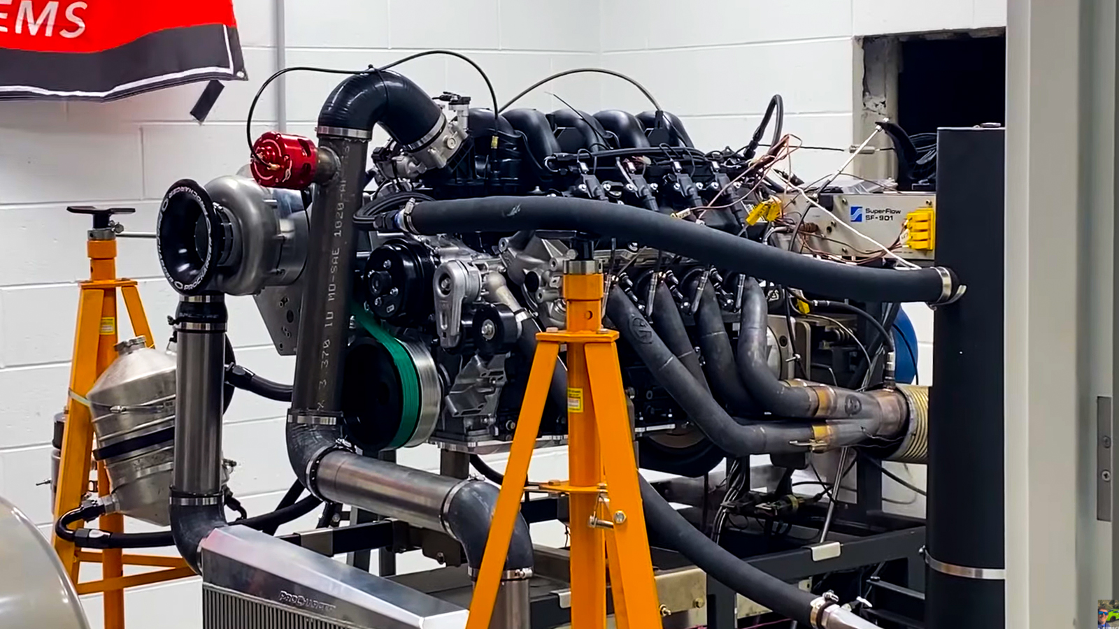 7,3-liter Ford Godzilla-V8 op dyno klinkt angstaanjagend