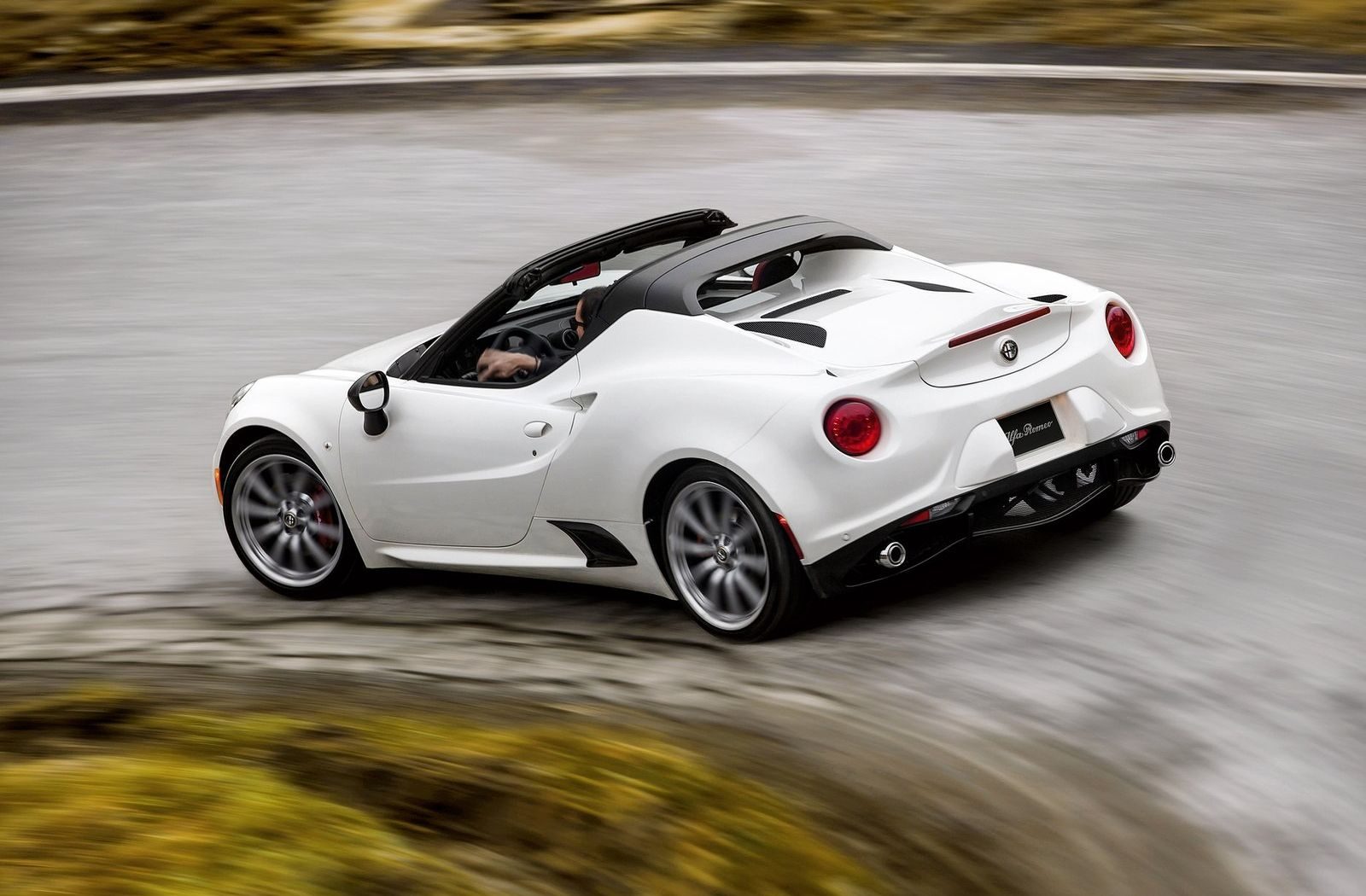 De Alfa Romeo 4C Spider is in de basis identiek aan de 4C Coupé. Dankzij de ultralichte koolstofvezel monocoque en het aluminium chassis weegt de open tweezitter nog geen duizend kilo. Het lage gewicht maakt een grote motor overbodig.