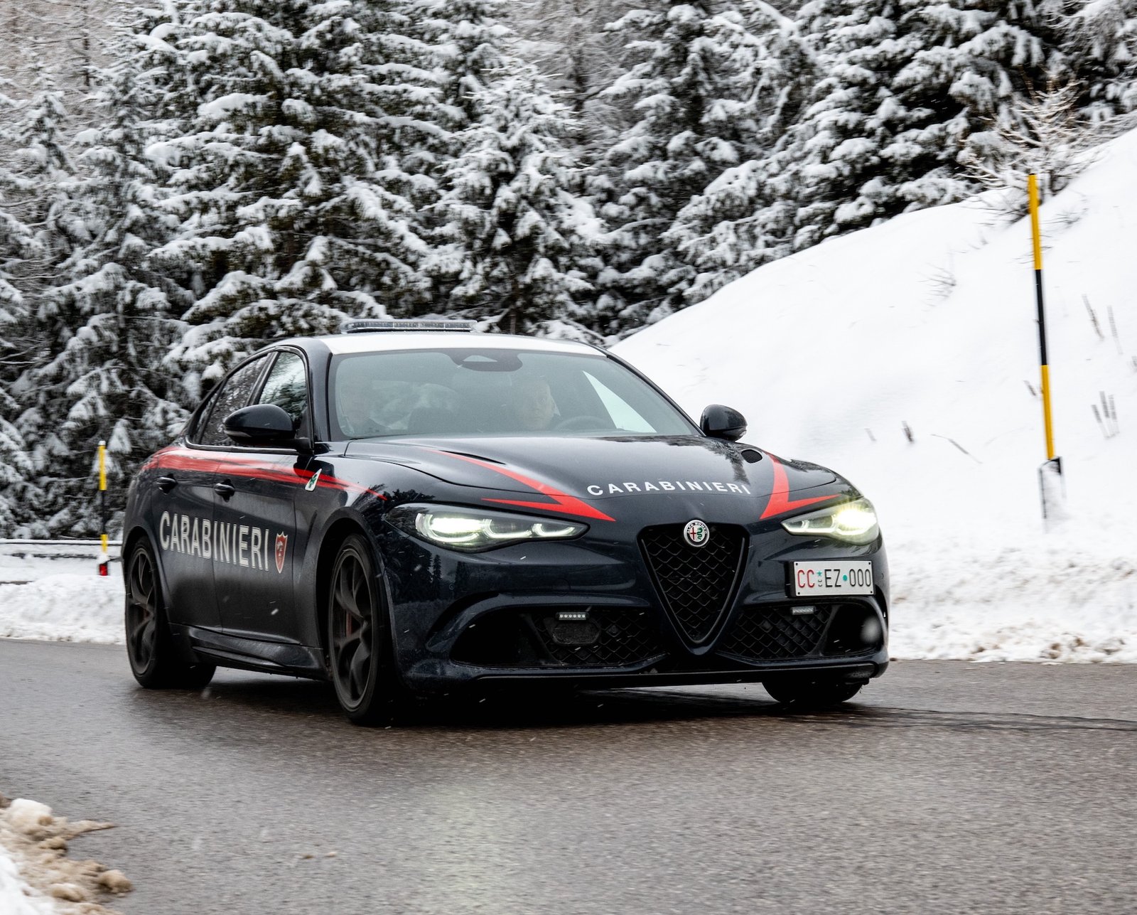 Tijdens de Arma 1814 Ski Challenge werd die verbondenheid ook letterlijk zichtbaar. Bezoekers konden onder meer een Alfa Romeo Giulia Quadrifoglio in officiële Carabinieri-uitvoering van dichtbij bekijken. Dit model, recent geleverd aan het korps, is uitgerust voor specifieke taken zoals het snel en veilig vervoeren van organen en bloed voor medische noodgevallen. Daarmee krijgt sportieve techniek een zeer concrete maatschappelijke functie.