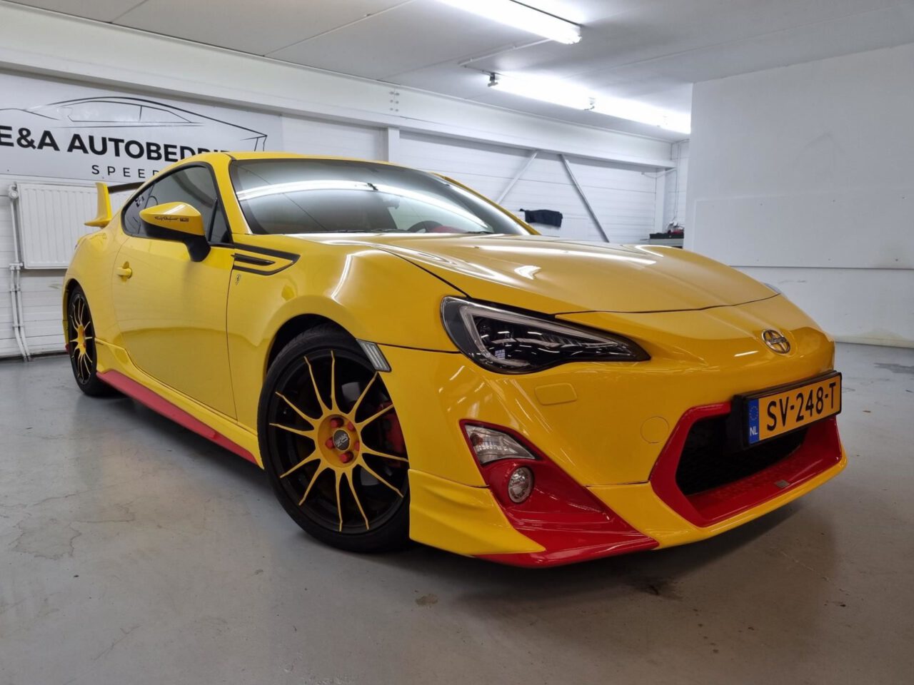 Speuren op het internet naar droomauto’s is natuurlijk heerlijk tijdverdrijf. Zo nu en dan kom je ook zeer bijzondere auto’s tegen. Neem deze kleurrijke ‘Toyota GT86 TRD’, uitgerust in rood en geel, zowel vanbuiten als vanbinnen. Hij staat te koop en is – zoals je al merkt – niet geschikt voor bescheiden types.