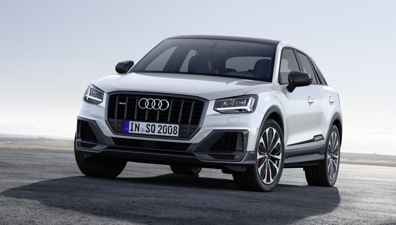 Je kan de sportievere versie herkennen aan een specifieke Singleframe grille, grote luchtinlaten, LED-koplampen, een splitter, buitenspiegels in aluminium-look, een forse achterspoiler en een diffuser met vier geïntegreerde uitlaatpijpen. Audi levert standaard 18-inch lichtmetalen wielen met 235/45-banden, 19-inch lichtmetaal is optioneel leverbaar. Rode remklauwen met S-badges zijn eveneens tegen meerprijs verkrijgbaar. Exacte specificaties en prijzen van de nieuwe SQ2 maakt Audi op een later moment bekend.