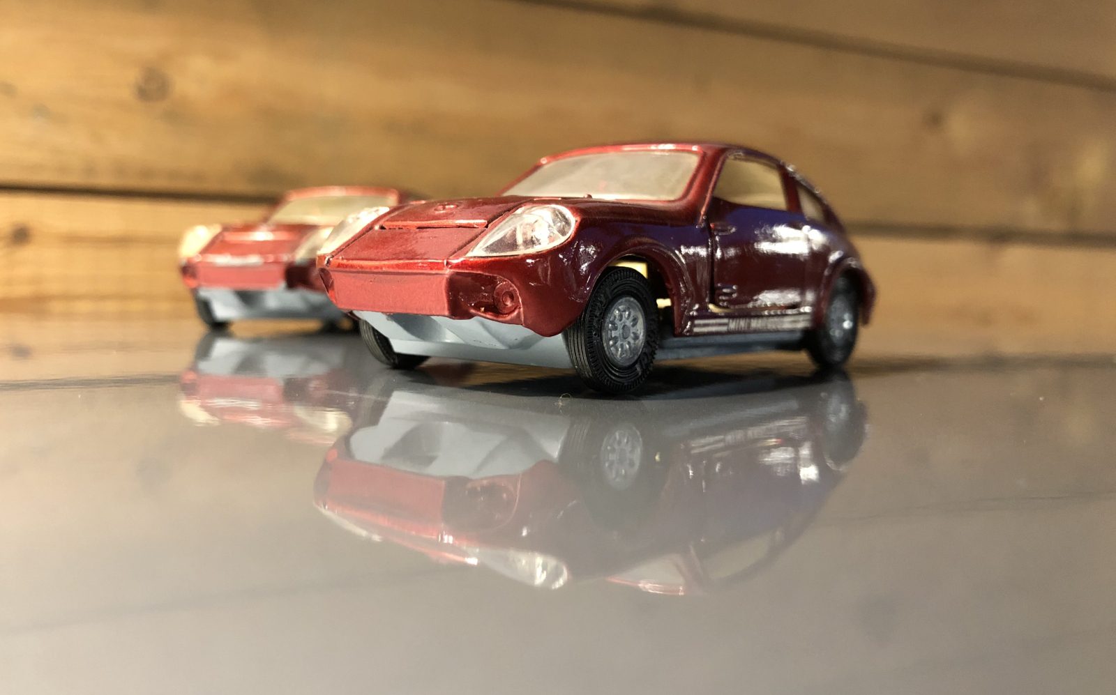 Terug naar de speelgoedversie. Corgi Toys introduceerde de Bordeaux rode Mini Marcos onder nummer 341 in 1968 en in 1970 verdween hij alweer uit het assortiment. Het model is gewoon van de metaallegering ‘zamac’ en niet van kunststof.