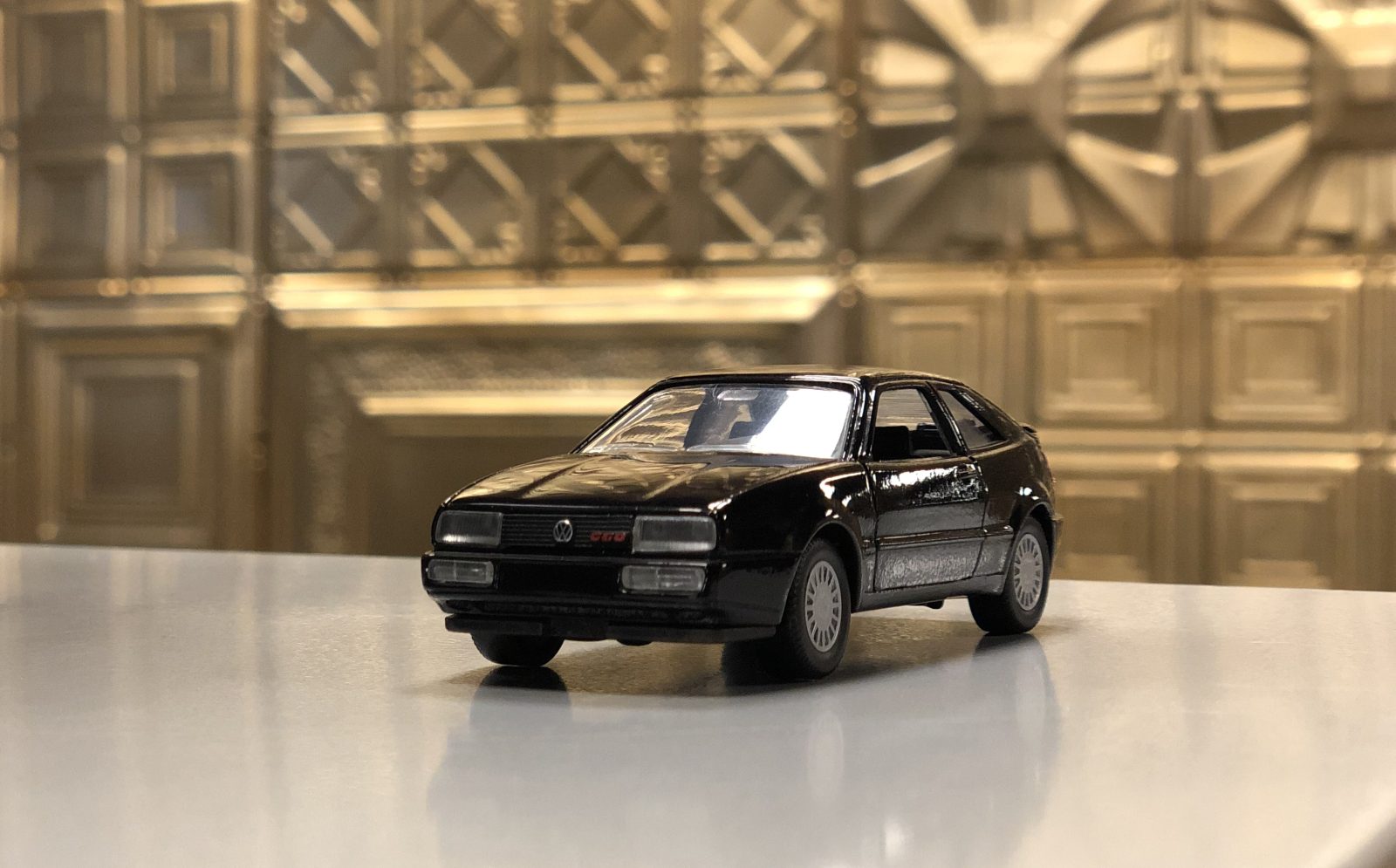 Ik zal nooit vergeten hoe ik ooit – op mijn favoriete route in Luxemburg en redelijk op snelheid – voorbij werd gescheurd door een Volkswagen Corrado. Wát een geweld, Tonnerwetter! En wat een mooie Volkswagen… Ik was zó onder de indruk dat ik meteen op zoek ging naar een miniatuur.