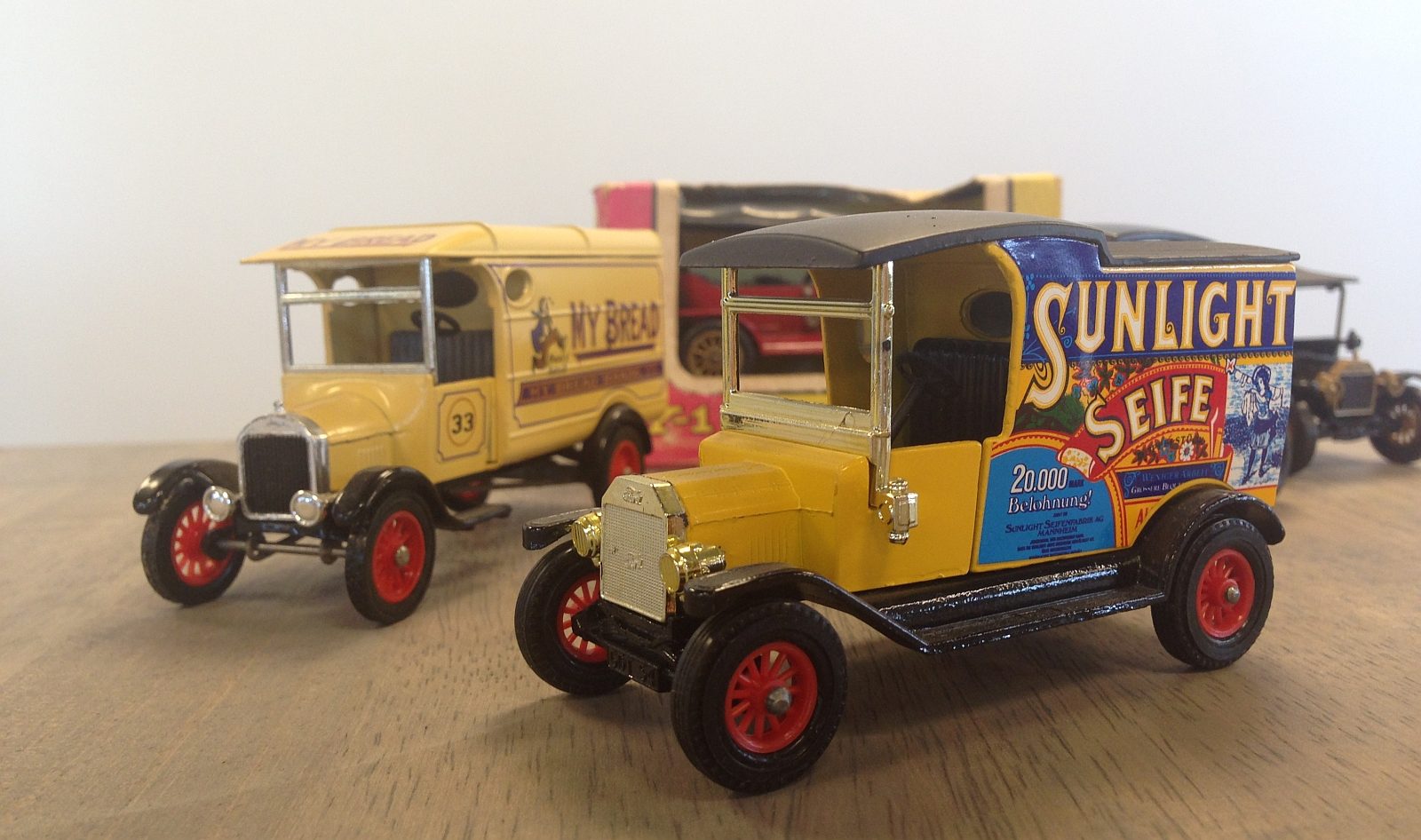 Matchbox kwam ook met een bestelversie van de T-Ford. De talloze opdrukken waren manna voor verzamelaars. Er verscheen ook een pick-up en een tankertje, ook in diverse uitvoeringen. Uiteindelijk verscheen ook de TT in de serie Models of Yesteryear. Het miniatuur met nummer Y21 hangt qua uitvoering tussen speelgoed en verzamelaarsmodellen. De miniaturen van destijds moesten het eigenlijk vooral van de kleurrijke bedrukking hebben. Maar Matchbox richtte zijn Models of Yesteryear weer steeds meer op de echte verzamelaar.