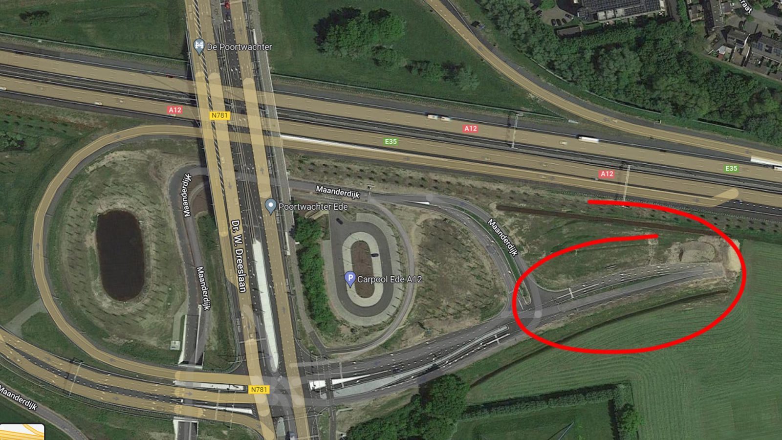 Twee auto’s reden dit weekend het water in bij de opgeheven oprit naar de A12 bij Bennekom. Een derde bestuurder, in een SEAT Altea, kon net op tijd op de rem trappen. Alle bestuurders hadden de hulp van de brandweer nodig om hun auto weer op droog asfalt te krijgen. De SEAT-bestuurder hoefde niet lang te wachten, want de berger was net klaar met een Peugeot uit het water te halen en was nog niet vertrokken. De SEAT kon op eigen kracht verder, de Peugeot die je in de video onderaan dit artikel ziet is afgevoerd. Er raakte niemand gewond. Op de Google Maps-afbeelding hieronder zie je de situatie vanboven.