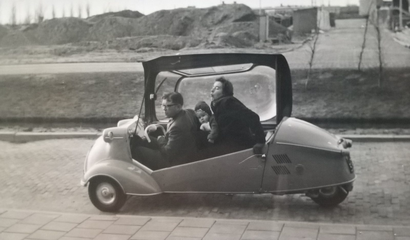 Je moet het maar durven: in een driewielertje met een transparante kap de weg op. Mijn ouders waren zo moedig!
