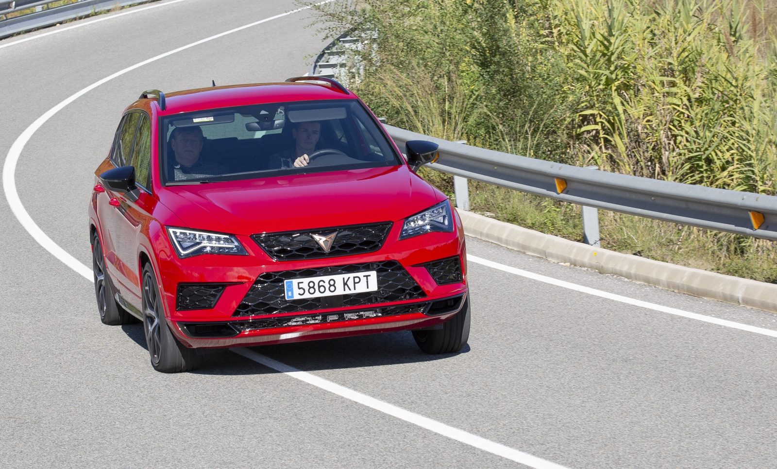 Inmiddels hebben we een flinke afdaling achter de rug. Wat volgt is een imposante klim. Scherp naar links een brug over, even zwaaien naar de lokale politieagent die ons aan de zijlijn staat aan te moedigen – dat kan gewoon in Spanje – en vol naar boven knallen. Hier toont de Cupra Ateca zijn spierballen. De snelheid blijft toenemen. Het zesde verzet wordt ingelegd en de snelheidsmeter op het standaard digitale display met in totaal vier verschillende weergaves nadert de 200 km/u. Het is eigenlijk absurd, maar zo leuk. En vooral: zo eenvoudig.