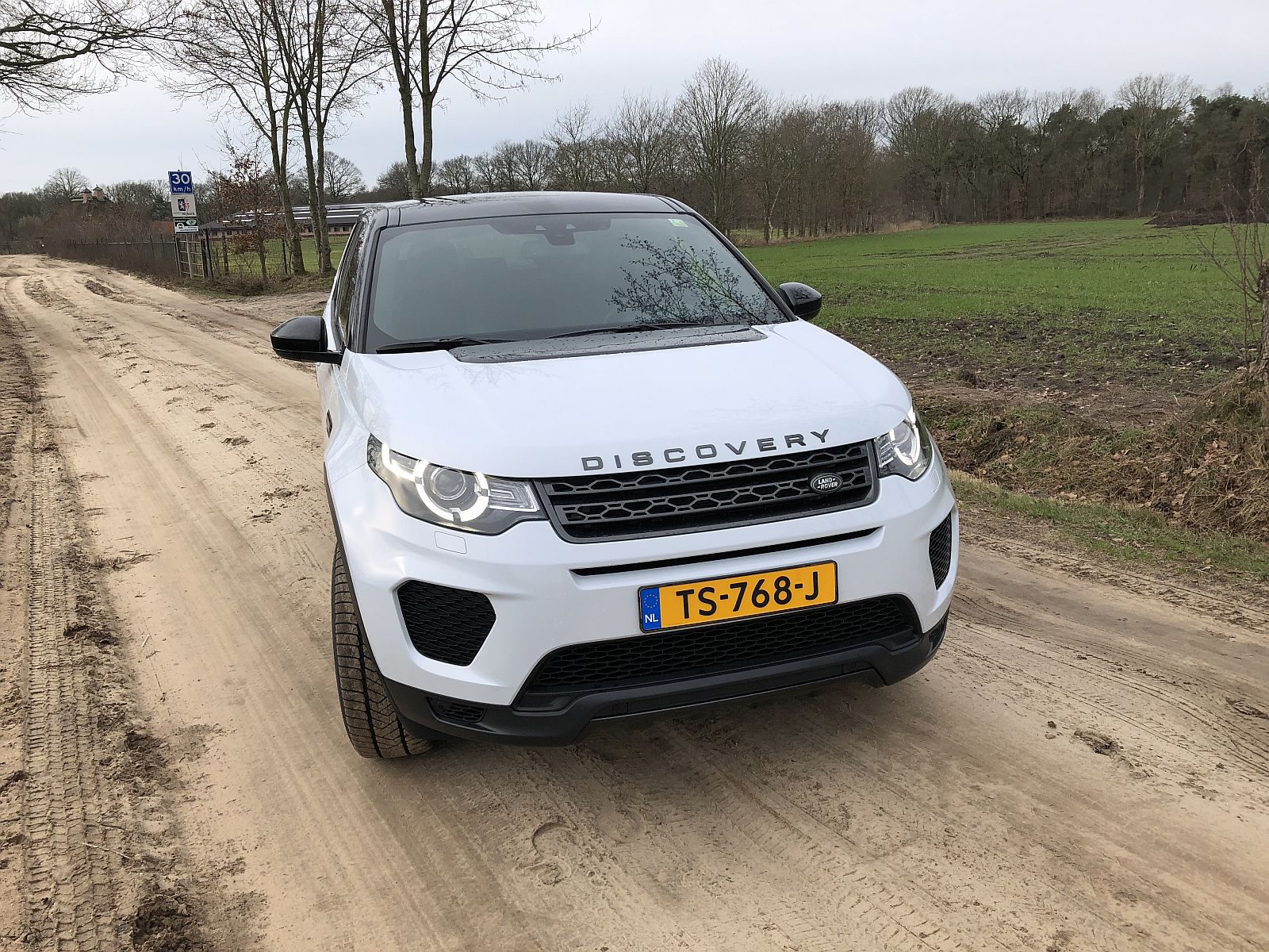 De Land Rover Discovery Sport in deze test heeft een 2,0-liter turbodiesel van 180 pk. Het is de uitvoering Landmark, onder meer herkenbaar aan de zwarte lichtmetalen wielen en zwart dak. De uitrusting is behoorlijk compleet, zoals onder meer een met leer bekleed interieur en verwarming voor stoelen, achterbank en stuur. De 9-traps automaat is een optie, vierwielaandrijving is standaard: vandaar TD4