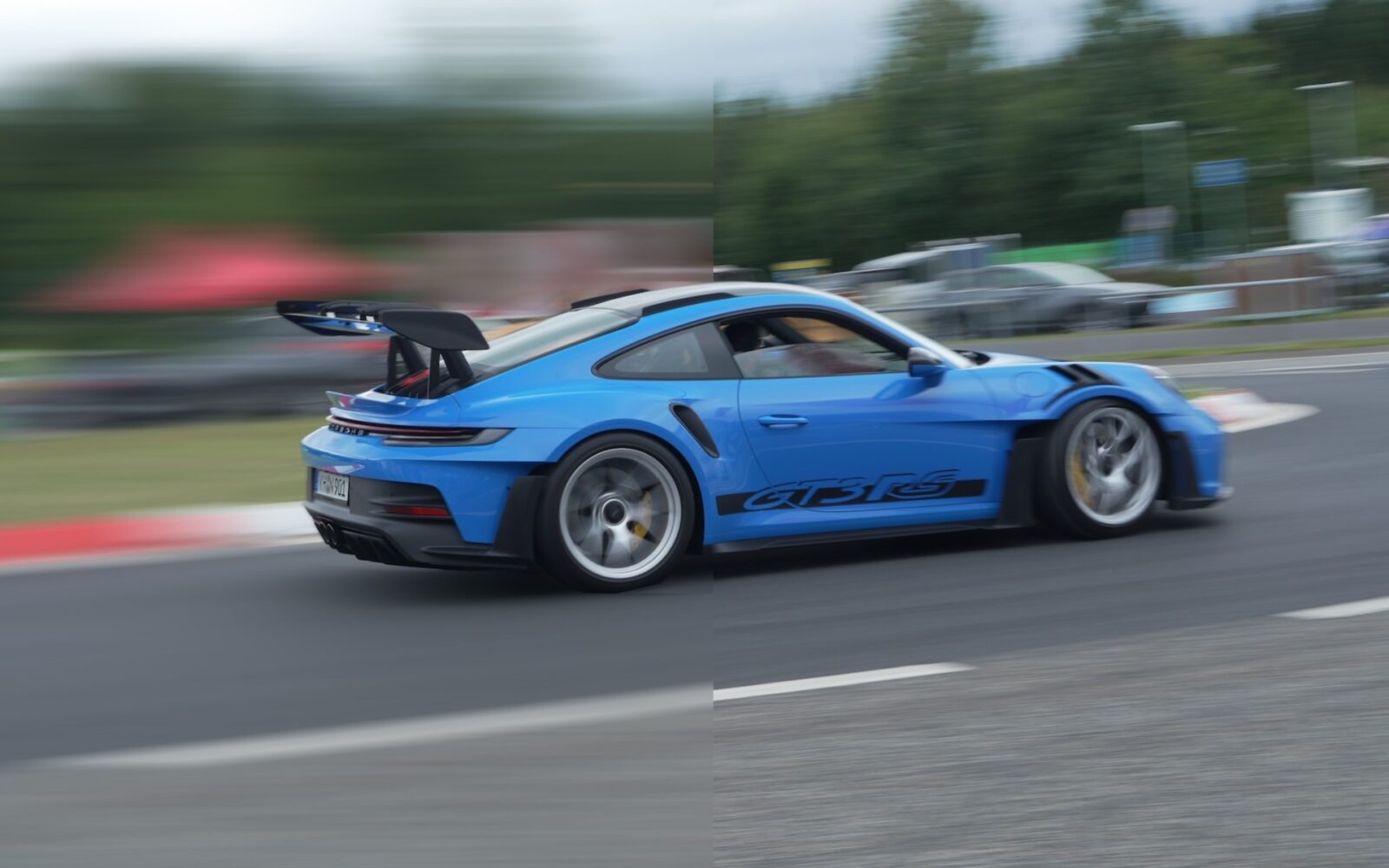 In onderstaande foto’s van AutoRAI-journalist Bart Oostvogels kan je zien dat er een panning-effect is toegepast. De eerste foto is de originele foto, direct uit de camera. Zoals je merkt zit er al ‘beweging’ in de foto rondom de GT3 RS, maar de auto is grotendeels scherp. We kunnen dit effect versterken, om nog meer snelheid in de foto te krijgen. Maar hoe doe je dat?