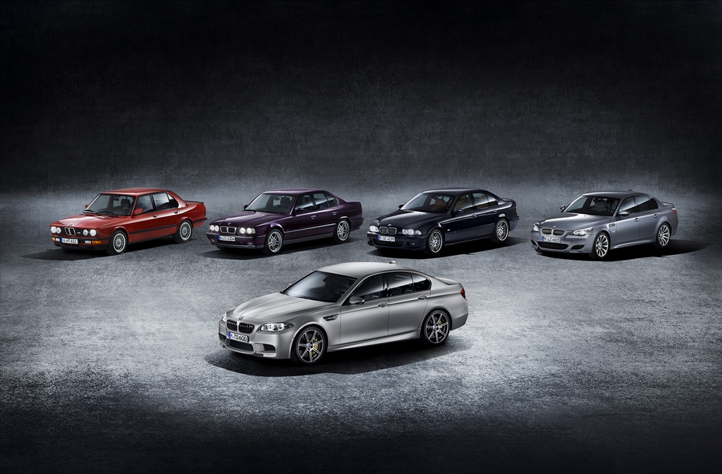 BMW Motorsport presenteerde in 1984 de eerste BMW M5. Voor de aandrijving was de 3,5-liter zescilindermotor van de unieke sportauto BMW M1 gekozen. Dankzij de dubbele bovenliggende nokkenassen en zes afzonderlijke gaskleppen kwam het vermogen op 210 kW (286 pk). In 1988 kwam de tweede generatie van de BMW M5 uit. De cilinderinhoud van de zescilindermotor was iets vergroot, waardoor het vermogen steeg naar 232 kW (315 pk). De derde generatie BMW M5, die eind jaren negentig verscheen, had in eerste instantie een 3,8-liter zescilinder van 250 kW (340 pk). In 1998 werd die krachtbron vervangen door een 4,9-liter V8 van 294 kW (400 pk). De vierde generatie BMW M5 (2005) legde de lat nóg hoger op het gebied van techniek en prestaties. Hierin debuteerde een 5.0 V10-motor met een vermogen van meer dan de spreekwoordelijke 100 pk per liter cilinderinhoud: 400 kW (507 pk). Deze V10 kreeg in 2005 en 2006 de prestigieuze ‘Engine of the Year’-award. De huidige, vijfde generatie nam in 2011 de scepter over met een 4,4-liter V8. Belangrijke eigenschappen zijn het lage gewicht dankzij het gebruik van meer aluminium en een compactere krachtbron. Samen met geavanceerde functies als het Active M Differential en de M Dynamic Mode van de stabiliteitscontrole zijn de prestaties van exceptioneel niveau. 30 Jahre M5 De BMW ‘30 Jahre M5’ heeft een 4,4-liter V8-turbomotor met een vermogen van 441 kW (600 pk) en een maximumkoppel van 700 Nm. Hij sprint van 0 naar 100 km/u in slechts 3,9 seconden. Behalve flink wat extra power is de ‘30 Jahre M5’ ook uitgerust met een serie onderscheidende uitrustingsitems uit het BMW Individual-programma. Van de speciale jubileumversie worden slechts driehonderd exemplaren gebouwd, ieder met een uniek productienummer. Een handjevol exemplaren van de ’30 Jahre M5’ komt naar Nederland voor een prijs vanaf 156.500 euro.