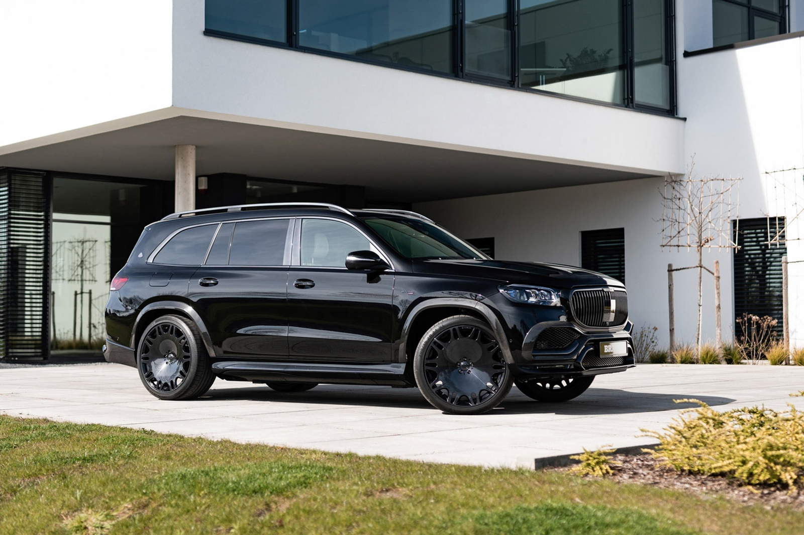 Het kan aan ons liggen, maar wij zien toch iets heel anders, als we naar de foto’s krijgen. Het vloeiende lijnenspel van de Maybach GLS is enigszins gebleven, maar verder is het een duister, bruut monster. ‘High-end elegantie’ zien we er niet in terug. De zwarte lak en koolstofvezel onderdelen geven hem een sinistere look — en wat dacht je van die velgen? Ook onderhuids is de Brabus 900 SUV een agressief beest.