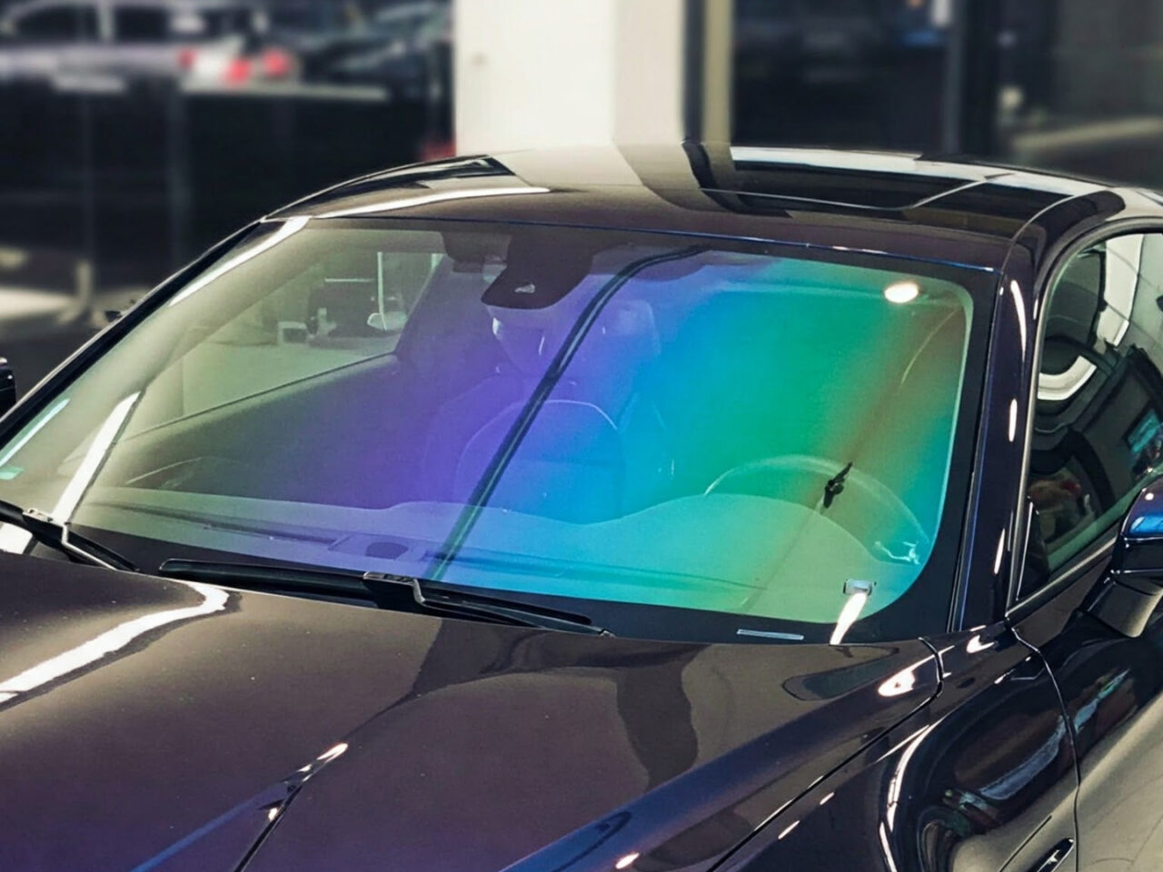 Chameleonfolie, ook wel bekend als ‘chameleon tint’ of ‘interferentiefolie’, is een speciale raamfolie die afhankelijk van de lichtinval en kijkhoek van kleur verandert. Dit geeft autoruiten een opvallende, spiegelende gloed in tinten zoals blauw, paars, groen of goud. De folie wordt vaak gebruikt voor styling en tuning, maar kan ook warmtewerend werken en extra privacy bieden.