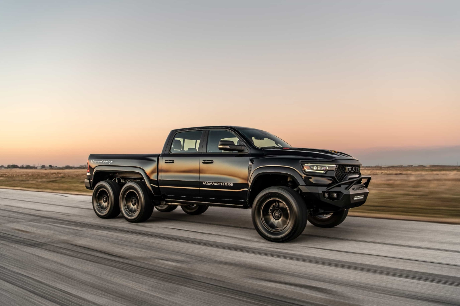 Het monster wordt aangedreven door de 6.2-liter Hellcat V8 uit de Ram TRX. In dat model levert het blok 700 pk, maar bij Hennessy vinden ze dat niet genoeg. Lang niet genoeg. De tuningsspecialist heeft de motor onder andere voorzien van een 2.65-liter supercharger, nieuwe brandstofinjectoren en nog wat andere leuke spulletjes, waardoor het vermogen stijgt naar 1.200 pk en 1.314 Nm koppel. De 6×6 heeft slechts 3,2 seconden nodig voor een 0-100 km/u-sprint.