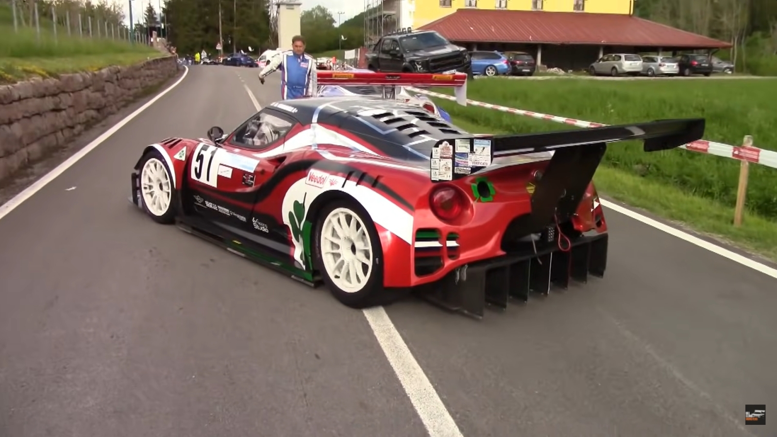 In de video hieronder zie (en vooral hoor) je de 670 pk sterke Alfa Romeo 4C van de Italiaanse coureur Marco Gramenzi. Er is nog maar weinig origineel aan de Alfa. Hij heeft een flinke body kit gekregen en voor de benodigde downforce is op het chassis ook een extreme achterspoiler gemonteerd. Ondanks dit alles weegt de auto met een gewicht van 800 kilogram bijna 100 kilo minder dan een originele 4C.