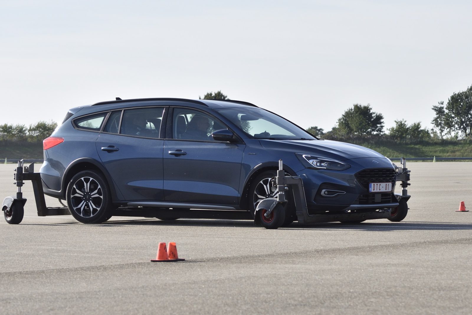 We gaan door naar de basis slipcursus. Daarvoor stappen we over naar een handgeschakelde Ford Focus Wagon, die is voorzien van zijwieltjes. Die zijwieltjes tillen de achterkant van de auto iets op, om zo het effect van weinig (of geen) grip te simuleren. Wanneer de achterkant uitbreekt is het de kunst om direct tegen te sturen en (omdat het een voorwielaandrijver is) met het gas de auto weer recht te trekken. Dat alles terwijl je het parcours (ofwel de ‘weg’) blijft volgen natuurlijk.