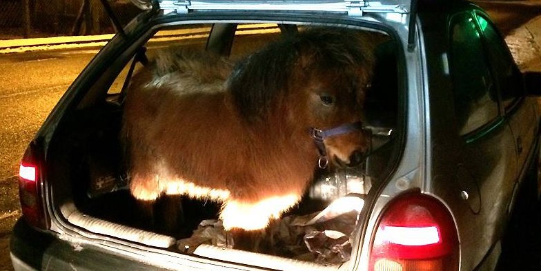 Het ging om een shetlandpony, die gelukkig wel in goede gezondheid verkeerde. De twee legden uit dat ze de Corsa hadden aangepast voor het bijzondere transport. Ze deden het wel vaker. ‘Gewoon, om de pony uit te laten.’ De politie kon er verder weinig mee en liet het trio de weg vervolgen.