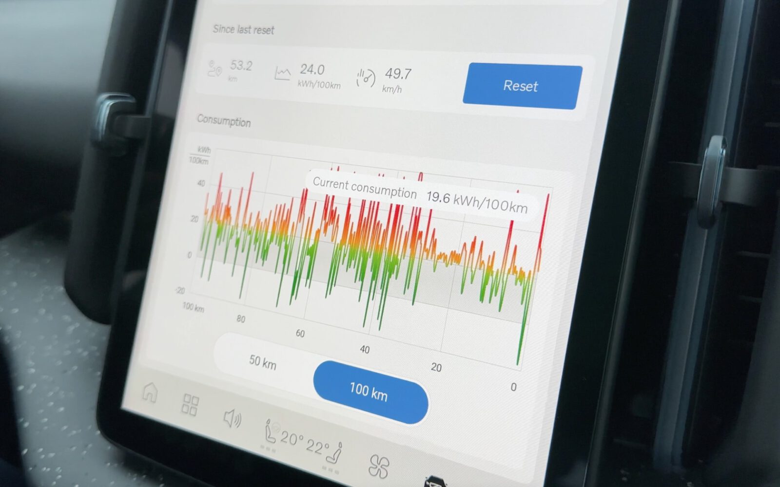 De enige manier nu om het energieverbruik te achterhalen, is door goed op te schrijven hoeveel kilometer je rijdt en hoeveel kWh je laadt. Een snelle rekensom geeft dan duidelijkheid, maar volgens Hermansson ook weer niet. “Ook tijdens de energieoverdracht gaat er in de stroomkabel energie verloren. Die energie is moeilijk te registreren.”