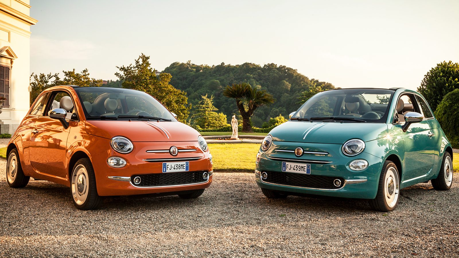 Fiat levert de 500 Anniversario in twee speciale kleuren: Sicilia Orange en Riviera Green. Het zal je niets verbazen dat deze tinten zijn geïnspireerd op de destijds leverbare kleuren op de originele 500. Chromen accenten op motorkap en spiegelkappen, de historische Fiat-logo’s en 16-inch lichtmetalen vintage wielen maken het jubileummodel compleet, al levert Fiat ook klassieke spaakwielen.