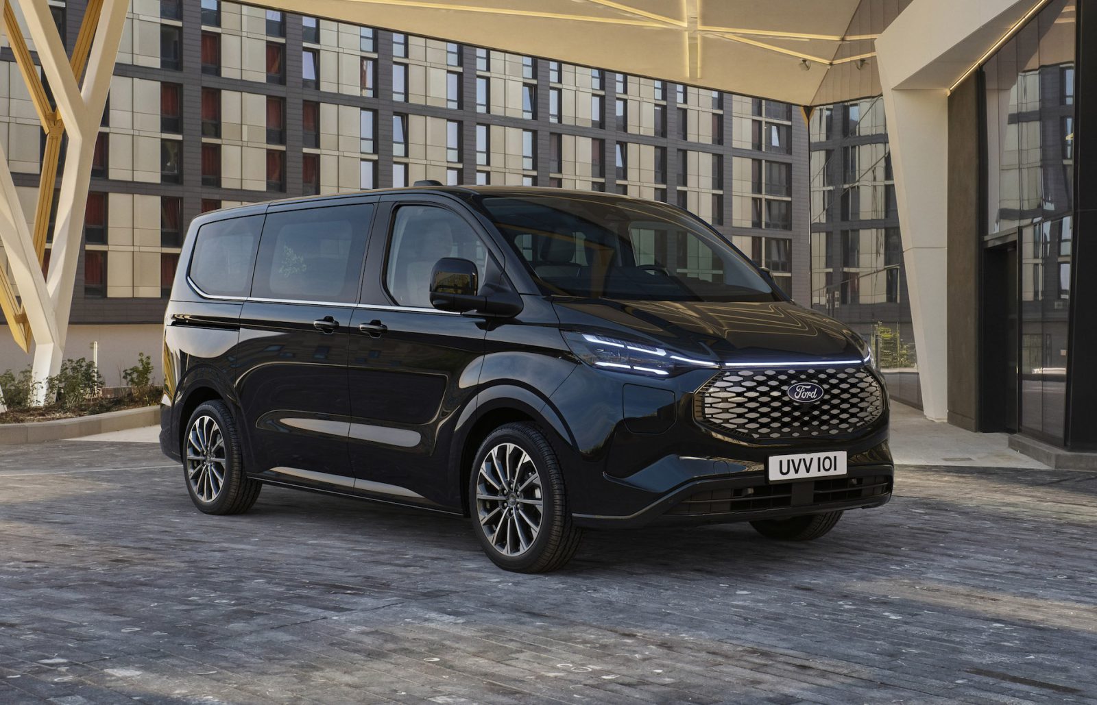 De elektrische MPV van Ford heeft een batterijpakket van 74 kWh (netto/bruikbaar) en een 160 kW (218 pk) sterke elektromotor. Rijden volgens het one-pedal-driving-principe is mogelijk. Een 11 kW AC driefase boordlader maakt het mogelijk om de batterij in minder dan 8 uur volledig op te laden. Opladen van 15 tot 80 procent duurt zo’n 41 minuten met een 125 kW DC-snellader. Tijdens tests met een 125 kW DC-snellader werd in slechts vijf minuten bijna 38 km actieradius bijgeladen.