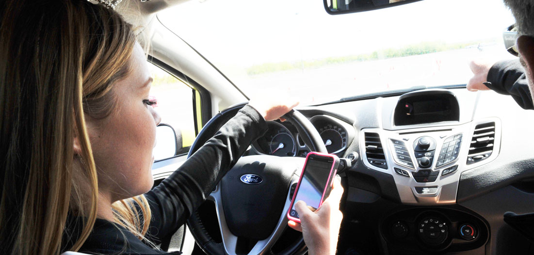 Beginnende bestuurders leren tijdens Ford Driving Skills for Life het gevaar zien van alcoholgebruik en selfies maken tijdens het rijden.