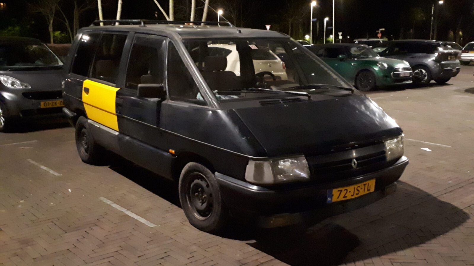 Op een avond zagen wij in Utrecht deze Renault Espace uit 1988. Hij is dus van net na de facelift. De Espace is sinds 2002 in Nederland en de huidige eigenaar heeft hem nog maar sinds februari. Er zijn meerdere dingen interessant. Zo heeft de RDW hem geregistreerd als een Renault J11, dus met de interne project-/chassiscode in plaats van de handelsnaam. Wat ook opvalt zijn de gele achterportieren. Natuurlijk, het kan best zijn dat de originele portieren beide verroest waren en vervangen moesten worden. De vraag is alleen: waar haal je gele portieren vandaan? In die kleur is deze generatie Espace namelijk nooit officieel geleverd… Wie meer weet mag het ons zeggen.