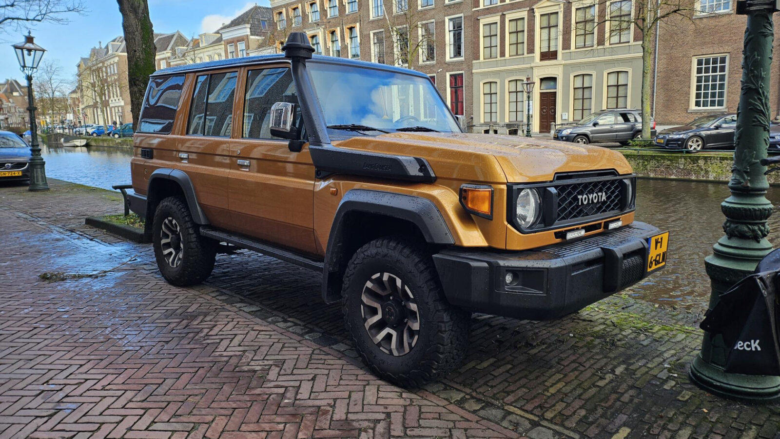 In het centrum van Leiden zagen wij deze Toyota Land Cruiser GRJ76, die sinds de zomer van 2024 op kenteken staat. De aanduiding GRJ76 staat voor deze vierdeurs ‘stationwagencarrosserie’. Opmerkelijk trouwens, dat dit exemplaar zwarte achterdeuren heeft. De gespotte Land Cruiser is voorzien van de 4,0-liter V6 benzinemotor, ‘uiteraard’ wel gecombineerd met een lpg-installatie om de boel nog een beetje betaalbaar te houden. De andere motoropties voor het huidige model zijn diesels: een 2,8-liter viercilinder, een 4,2-liter zes-in-lijn en zelfs een 4,5-liter V8.