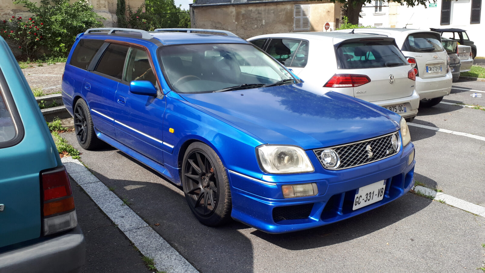 De Nissan Stagea die wij in Frankrijk zagen is van faceliftmodeljaar 1998. Franse kentekens zijn niet na te trekken, zoals in Nederland, dus het exacte bouwjaar van dit exemplaar weten we niet. Afgezien van de wielen lijkt de Nissan nog helemaal origineel te zijn en dat is voor een Stagea niet vanzelfsprekend. Het model was namelijk al snel populair bij tuners, net als de aanverwante Skyline.