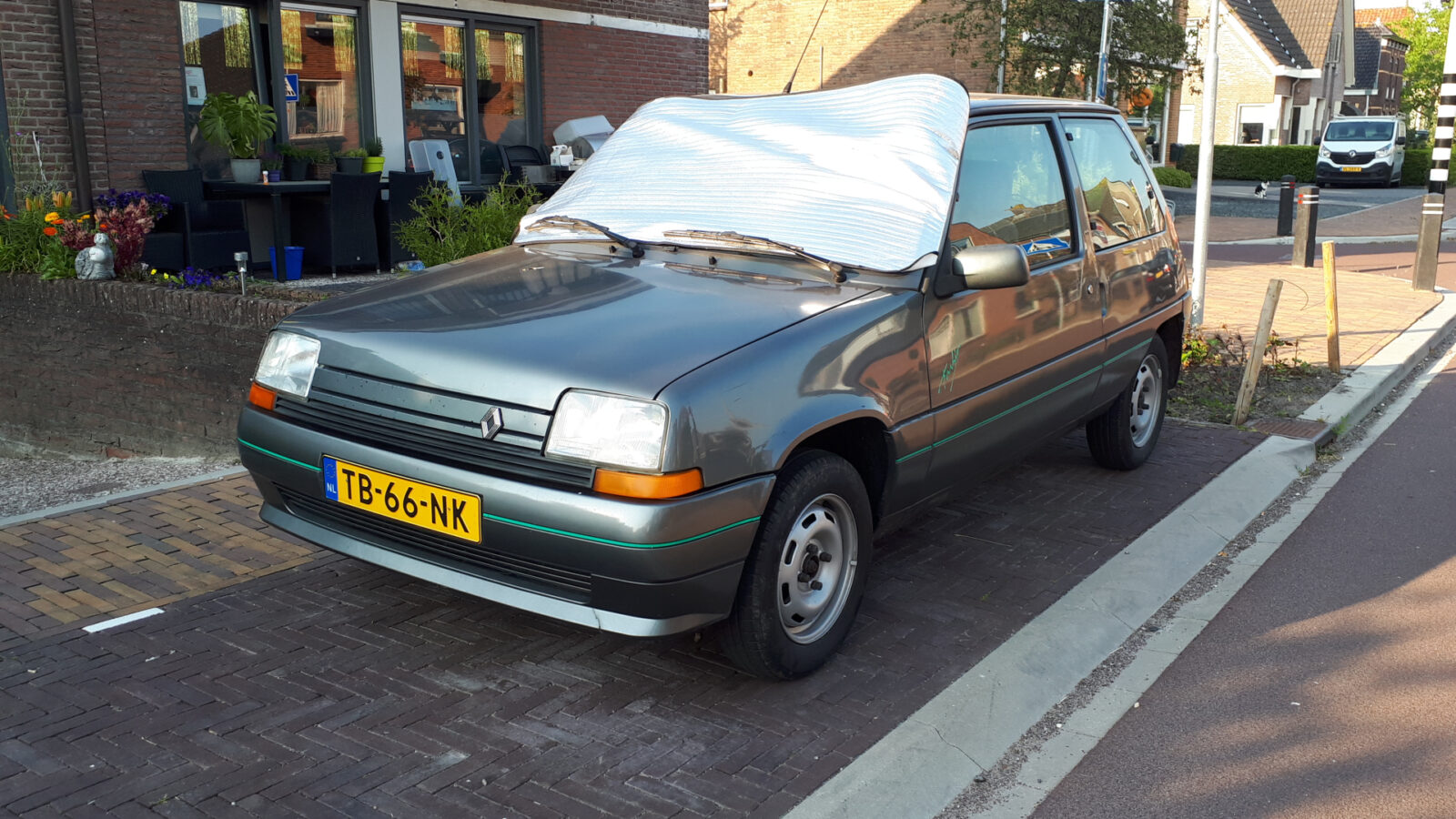 We zien hier om precies te zijn een origineel Nederlandse Renault 5 GTS uit 1988. De GTS was een van de luxere uitvoeringen, met een 50 kW (68 pk) sterke 1,4-liter benzinemotor onder de kap. De huidige eigenaar heeft hem nu een klein jaar in bezit. Het is vast een liefhebber, al is het maar omdat het interieur goed wordt beschermd tegen de zon. Dan was dit nog niet eens op een van de echt warme dagen die we nu net achter de rug hebben. Daarnaast staat deze R5 er ook gewoon nog erg mooi bij. De afbladderende toplaag van de kunststoffen aan de achterzijde is dan ook een opvallend contrast met de rest van de auto, die haast nog nieuw lijkt.