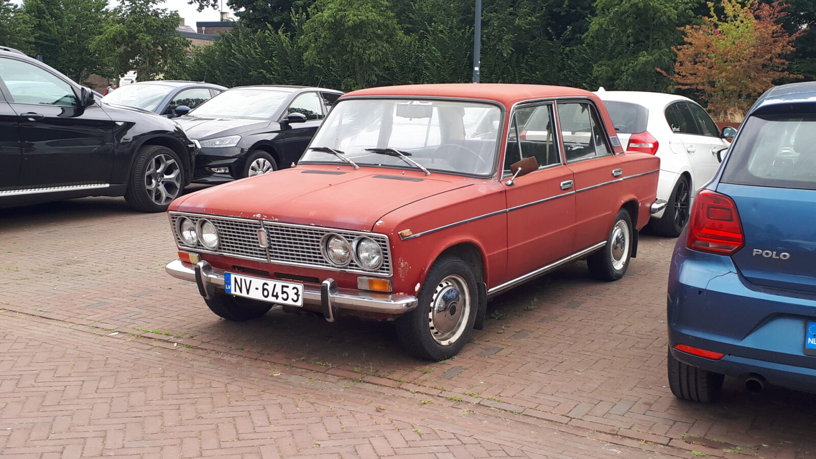 Vorige week zag je in deze rubriek een mooie Lincoln. Toen zeiden we al dat we in het stadje Elburg bijzonder veel spots waren tegengekomen. Een van die andere spots is deze VAZ-2103 Zhiguli. De auto staat op kentekens uit Letland. Da’s een eind rijden voor zo’n autootje. Voor zover wij weten kan je Letse kentekens niet zomaar natrekken, dus we weten niet uit welk jaar dit exemplaar komt.