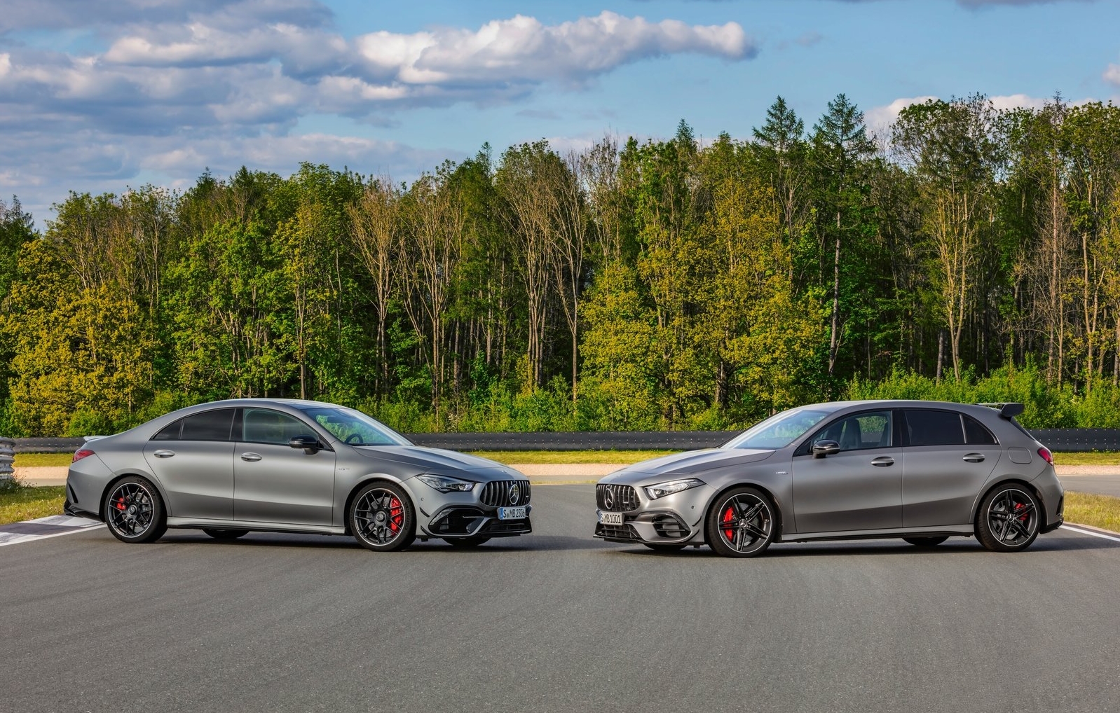 De A 45 S 4MATIC+ sprint in slechts 3,9 seconden naar 100 km/u en de CLA 45 S 4MATIC+ in 4,0 seconden. De A 45 4MATIC+ – de basisversie dus – doet dit in 4,0 seconden en de CLA 45 4MATIC+ in 4,1 seconden. De topsnelheid van de basisversies komt uit op 250 km/u, maar de S-variant haalt zelfs 270 km/u. Met het optionele AMG Driver‘s Package kan de topsnelheid ook voor de basismodellen worden verhoogd tot 270 km/u.
