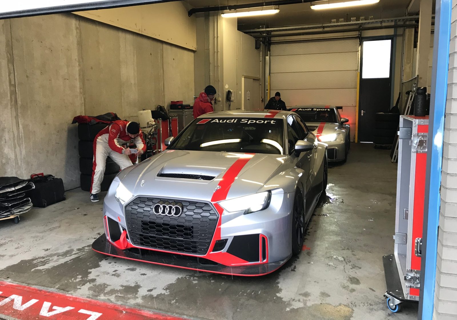 Goed, tijd om even af te kicken. Terug naar de pits, sleutels inleveren en een race-overall van Audi Motorsport aantrekken. We gaan mee op een hot lap met Robin Frijns in de Audi RS 3 Limousine LMS. Die auto verschilt op bijzonder veel punten met de straatauto die Audi voor 82.345 euro in de prijslijst heeft staan.
