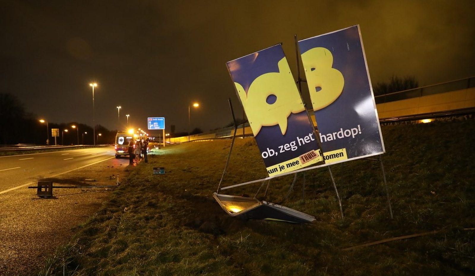 Nu online: #Alcomobilist botst tegen reclamebord van de landelijke “BOB campagne” op de #A13 bij #Delft https://t.co/PZAVQh8eTp pic.twitter.com/9vVFwzo5Na