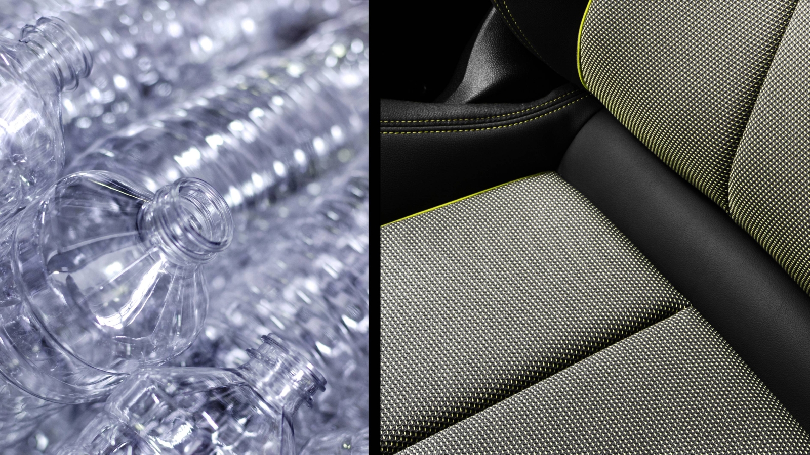 Hoe maak je van PET-flessen stoelbekleding? Dat legt Audi uit. “Om van PET-flessen een textiel te maken, worden ze eerst vermalen tot granulaat en vervolgens op innovatieve wijze omgezet in sterke draden waarmee de bekleding kan worden geweven”, stelt Audi.