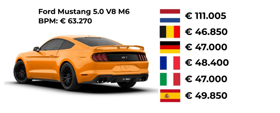 Enfin, om te laten zien wat het verschil met andere landen is hebben we onderzoek gedaan in België, Duitsland, Frankrijk, Italië en Spanje. We zochten extremen op. En dan bedoelen we ook echt extremen; bij één model is het verschil in aanschafprijs zelfs meer dan een ton. Klik onder de afbeelding verder naar de volgende.