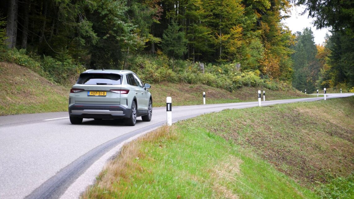 Ondanks het bergachtige terrein doet de Elroq het ook hier uitstekend. Op de snelweg haalden we vrij eenvoudig tussen de 400 en 450 kilometer, maar nu het tempo wat lager ligt, gaan we richting de 500 kilometer. In de bergen bewijst de Elroq daarnaast opnieuw hoe comfortabel elektrisch rijden kan zijn. Zodra je afdaalt, laat je het rempedaal los en remt de elektromotor de auto af. Daardoor hoef je niet of nauwelijks te remmen, en onderaan de berg zie je soms zomaar 20 tot 30 kilometer extra actieradius verschijnen op het display. Op zulke momenten wil je echt niet terug naar een benzineauto.
