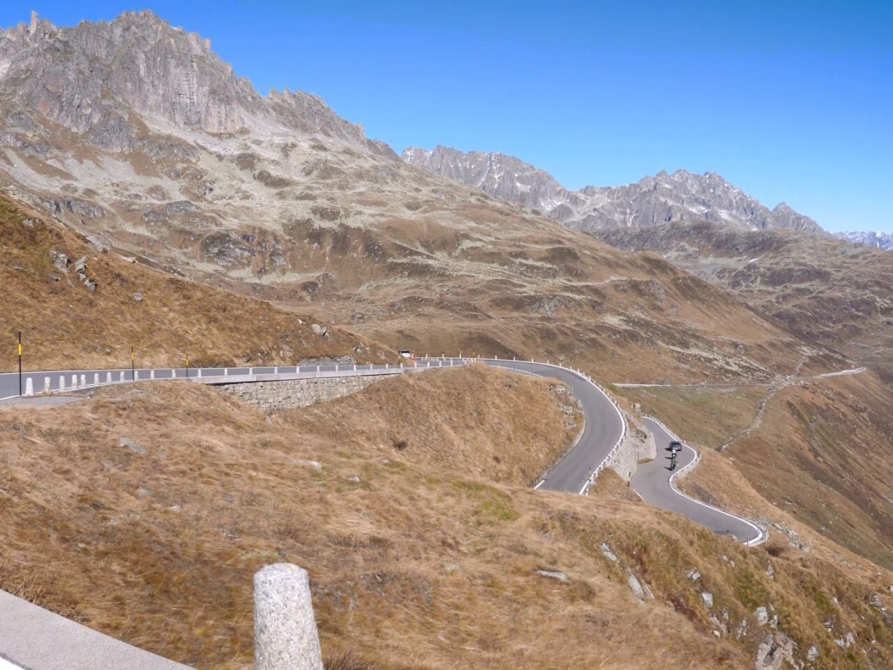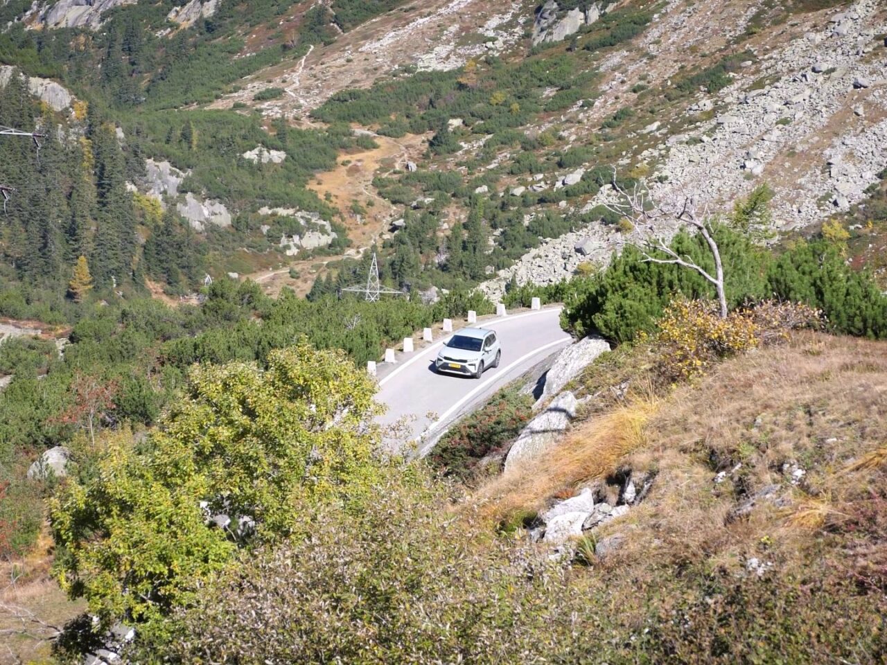 Onze laatste dag is de spectaculairste. We rijden drie bergpassen: de Brünig, Grimsel en Furka. De route komt rechtstreeks uit de Grand Tour of Switzerland-app – ideaal voor wie niets wil missen van het land, zonder dat je eerst zelf urenlang een route moet plannen aan de keukentafel.