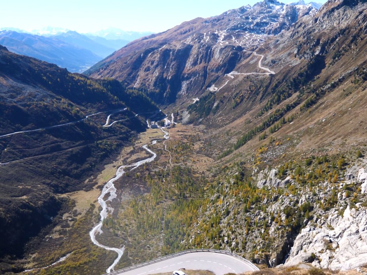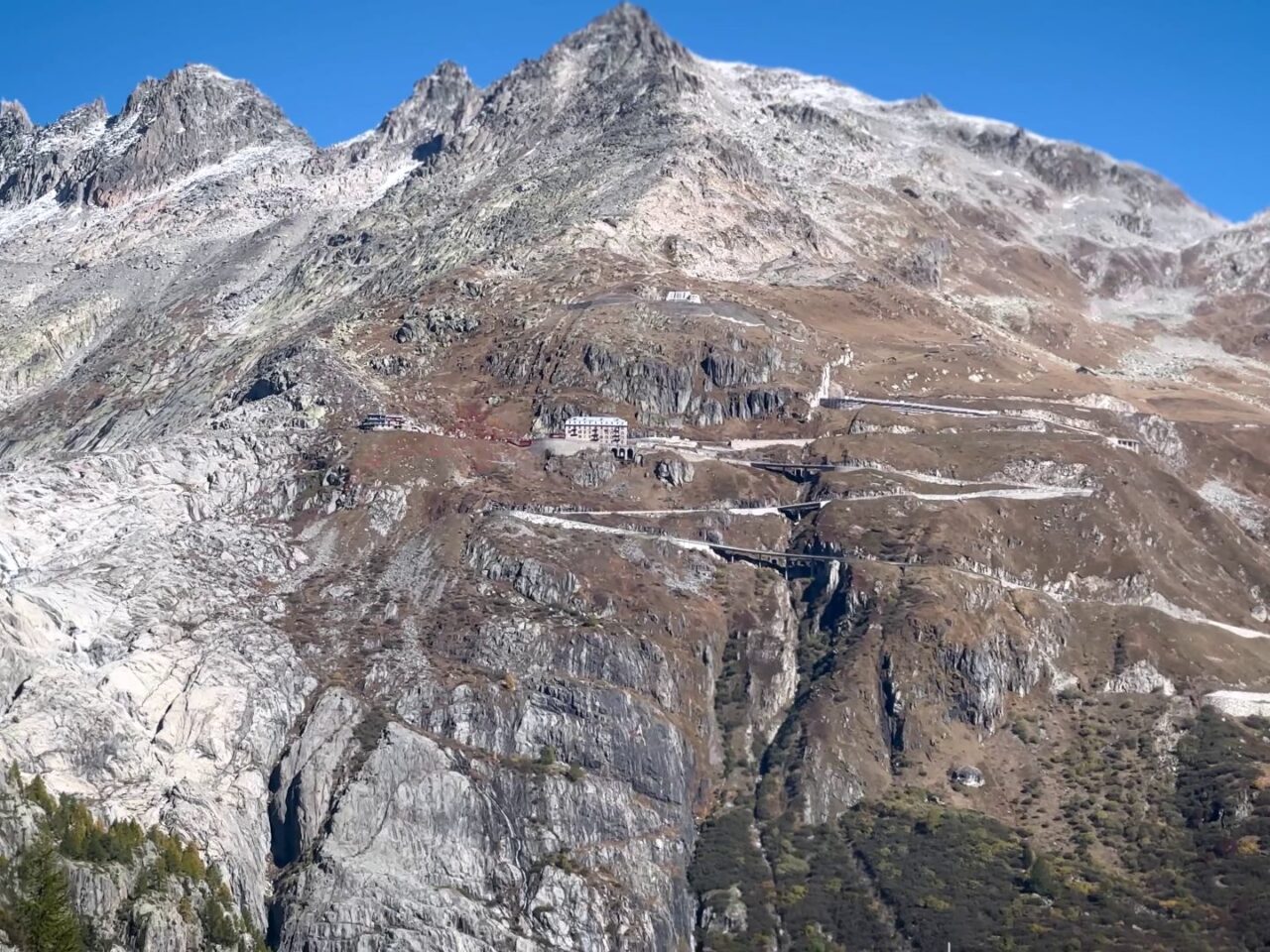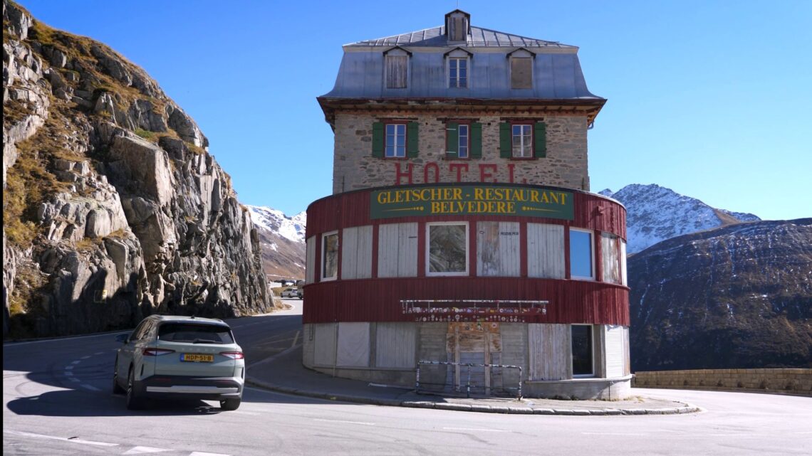We maken een korte pitstop bij het iconische Belvédère Hotel, dat midden op de Furkapas in een haarspeldbocht ligt en beroemd werd door James Bond’s Goldfinger. Tegenwoordig is het ook een Instagram-hotspot – en terecht. Het uitzicht vanaf deze stop is overigens net zo indrukwekkend als het zicht op het hotel.