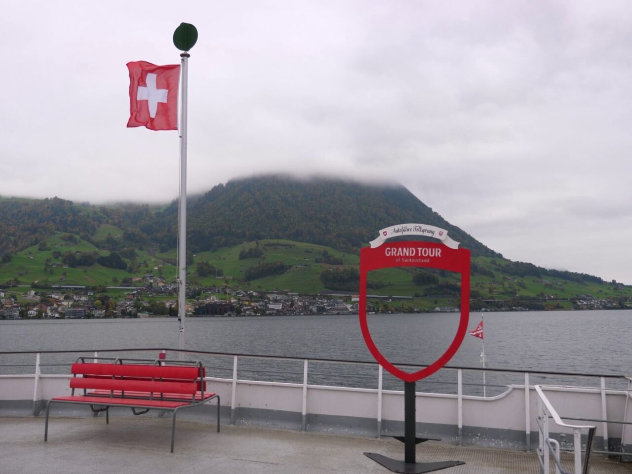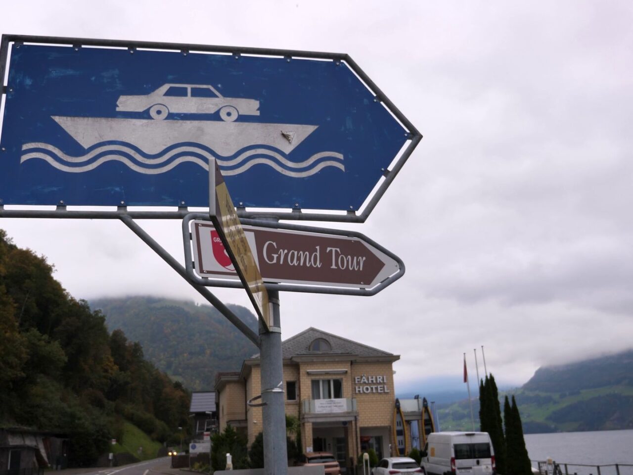 Daarna dalen we af richting het Vierwoudstedenmeer en nemen de ferry van het dorpje Gersau naar Beckenried. Een korte overtocht, maar een perfecte afsluiter: de Elroq op het dek, bergen op de achtergrond en alleen het zachte kabbelen van het water. Ook deze haast sprookjesachtige overtocht van zo’n 30 minuutjes – die we zelf nooit hadden gevonden – maakt onderdeel uit van de Grand Tour of Switzerland.