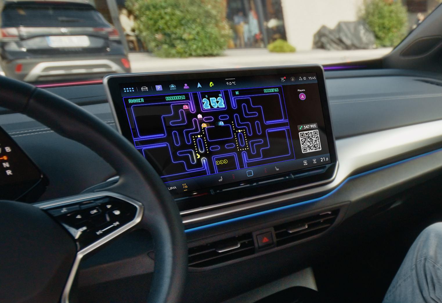 De Championship Edition van Pac-Man is speciaal aangepast en zit vol grappige verwijzingen naar Volkswagen: klassieke Pac-Man-elementen zijn vervangen door velgen, silhouetten van iconische Volkswagens en herkenbare badges als ‘GTI’ en ‘R’. Volkswagen introduceert ook dynamische sfeerverlichting die meespeelt tijdens het gamen. De verlichting reageert dus dynamisch op de spelinhoud en de inputs van de spelers, wat zorgt voor een authentiek arcadegevoel.