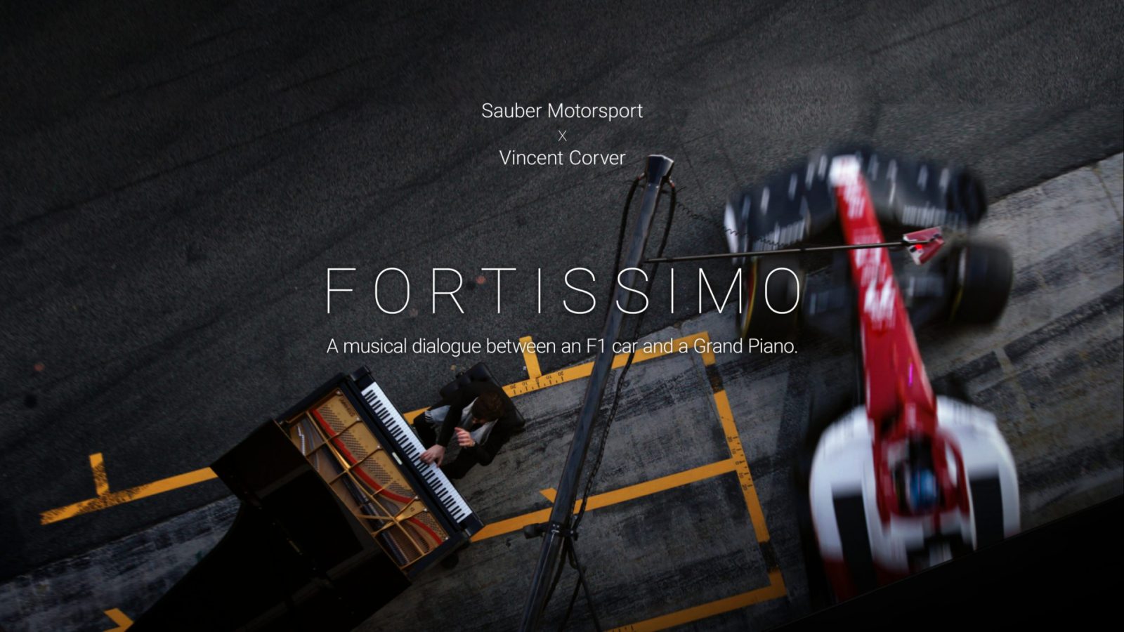 Een hoofdrol spelen in een videoclip van een Formule 1-team? Die droom is uitgekomen voor de Nederlandse pianist Vincent Corver. Het Italiaans-Zwitserse F1-team van Alfa Romeo/Sauber wilde zijn jubileumjaar extra glans geven. Zo ontstond deze kloeke coproductie van piano en Formule 1-auto in de clip Fortissimo.
