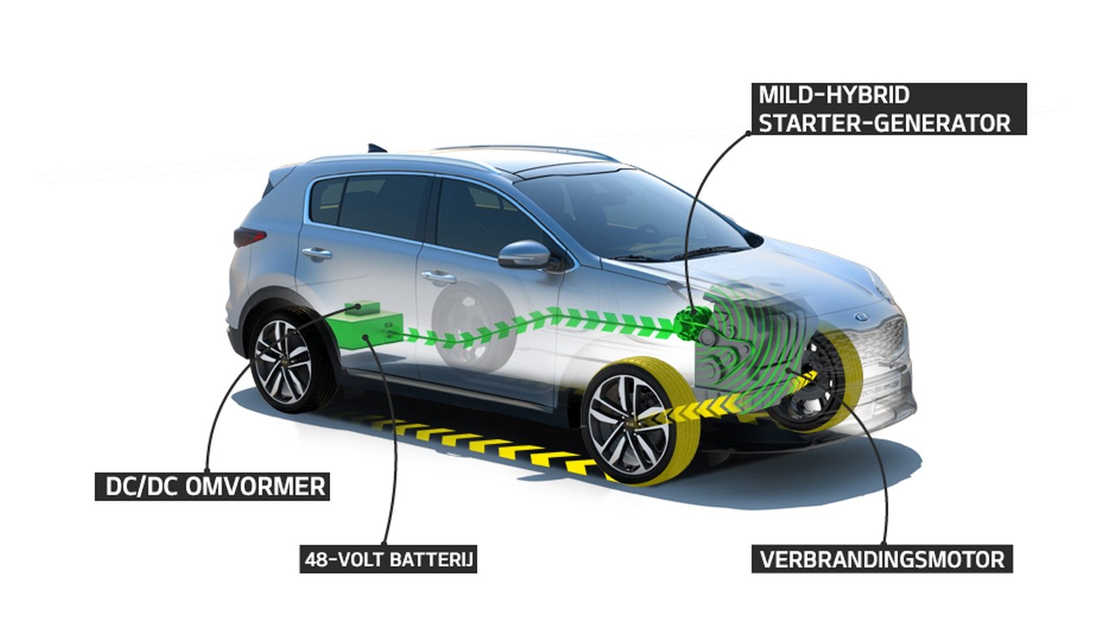 Hoe het werkt? Dat legt Kia uit: De mild-hybride technologie bestaat uit een compacte 0,46 kWh 48-volt lithium-ion batterij en een Mild-Hybrid Starter-Generator (MHSG). Door de MHSG elektronisch aan te sturen met behulp van een omvormer kan het systeem soepel schakelen tussen twee modi: ‘motor’ en ‘generator’. Het systeem is met een riem verbonden aan de krukas van de dieselmotor. In de modus ‘motor’ biedt MHSG tijdens accelereren tot 10 kW aan elektrische ondersteuningskracht aan de motor. De motor hoeft zo minder hard te werken en verbruikt dus minder brandstof maar produceert ook minder emissies. In ‘generator’ modus slaat het systeem kinetische energie – vrijgekomen tijdens het remmen of uitrollen van de auto – op en gebruikt deze energie om de batterij weer op te laden.