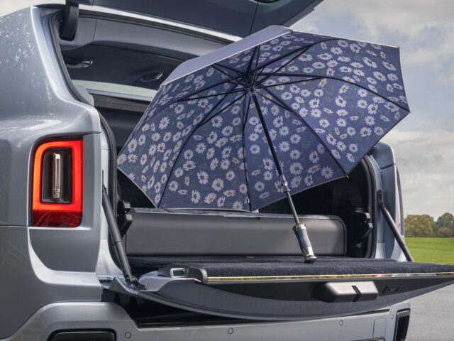 De paraplu’s, verborgen in de achterdeuren, kregen een print van madeliefjes aan de binnenkant. Dan is er nog het dak. De Bespoke Starlight Headliner toont vier sterrenbeelden die vaak boven zijn favoriete wandelroute zichtbaar zijn: Ursa Major, Ursa Minor, Gemini en Taurus. “Ik vond het mooi om die verbinding met de natuur ook letterlijk naar boven te halen.”
