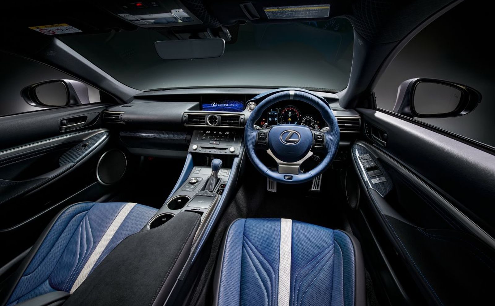 Over dat blauw gesproken: die kleur overheerst in het interieur. Lexus installeert namelijk kuipstoelen in een opvallende blauwe tint. Lederen afwerking komt ook terug op het sportstuur en de middentunnel. Ook opvallend is de zwarte hemelbekleding met bijzonder ruitpatroon.