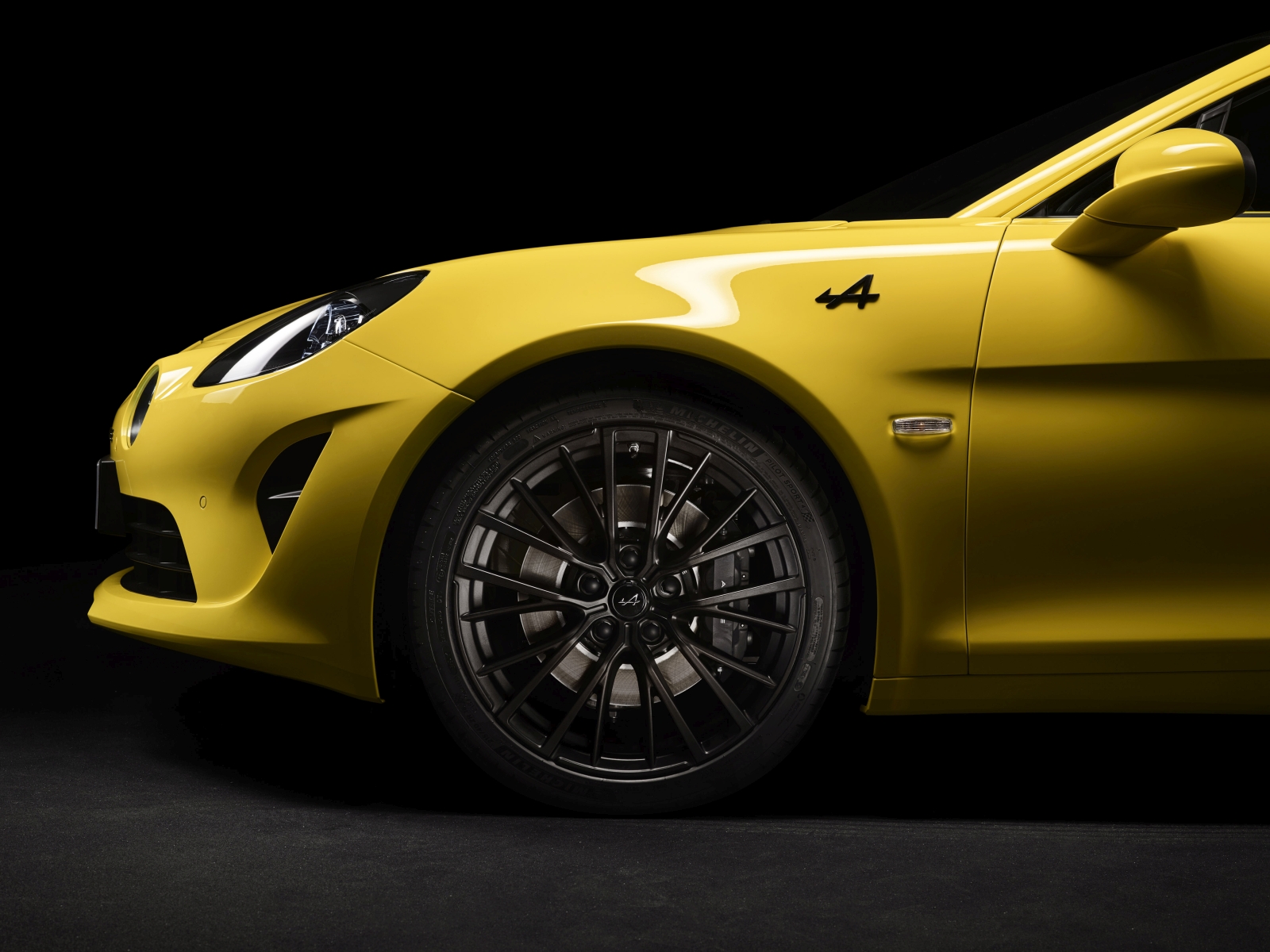 De niet-metallic lakkleur Jaune Tournesol – een soort zonnebloemgeel – is geïnspireerd op de bekende Alpine-kleur uit het verleden die populair was in de jaren zestig en zeventig. De A110 Color Edition heeft verder zwarte details, zoals de Alpine-logo’s, in de LED-koplampen en bij de 18-inch ‘GT Race’ lichtmetalen wielen. De remklauwen zijn afgewerkt in antraciet. Optioneel levert Alpine een dak van koolstofvezel.