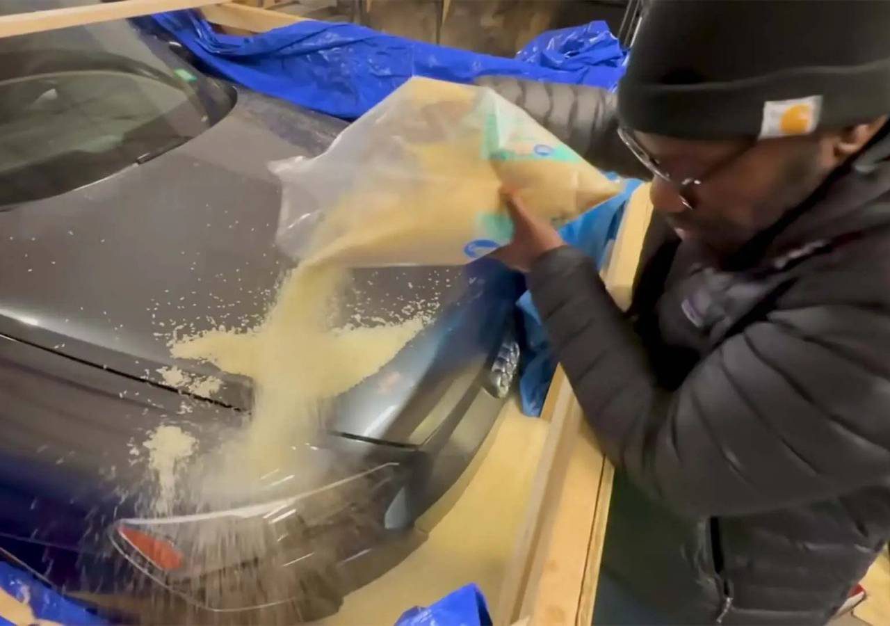 De Amerikaan pakte het met de Audi dit keer anders aan. In plaats van de auto helemaal uit elkaar te schroeven, verzon hij een andere oplossing om de auto ‘te drogen’. Via het internet wist hij 2.000 kilogram rijst – die tegen de houdbaarheidsdatum aanzat – goedkoop op de kop te tikken. Hij bouwde een gigantische houten kist, reed daar de Audi e-tron in en vulde de kist én de auto met rijst. Of het gelukt is zie je in de video hieronder: