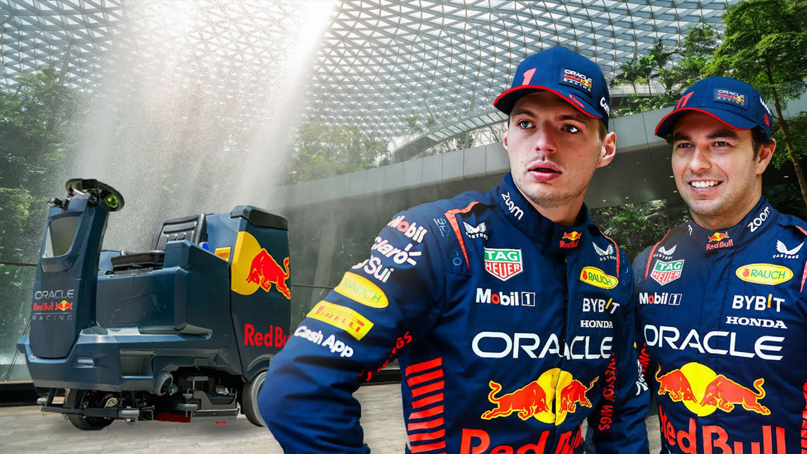 Singapore Changi Airport wordt vaak beschouwd als een van de meest indrukwekkende luchthavens ter wereld. Bekijk de onderstaande video maar eens. Alsof je midden in de jungle loopt. Een jungle waar je toevallig ook hele dure horloges kunt kopen en een hamburger kunt scoren. Dit weekend zullen Verstappen en zijn F1-collega’s de straten van de Aziatische eilandstaat onveilig maken. Als stunt nemen Verstappen en Perez het nu al tegen elkaar op tijdens een spannende race met schoonmaakautootjes.