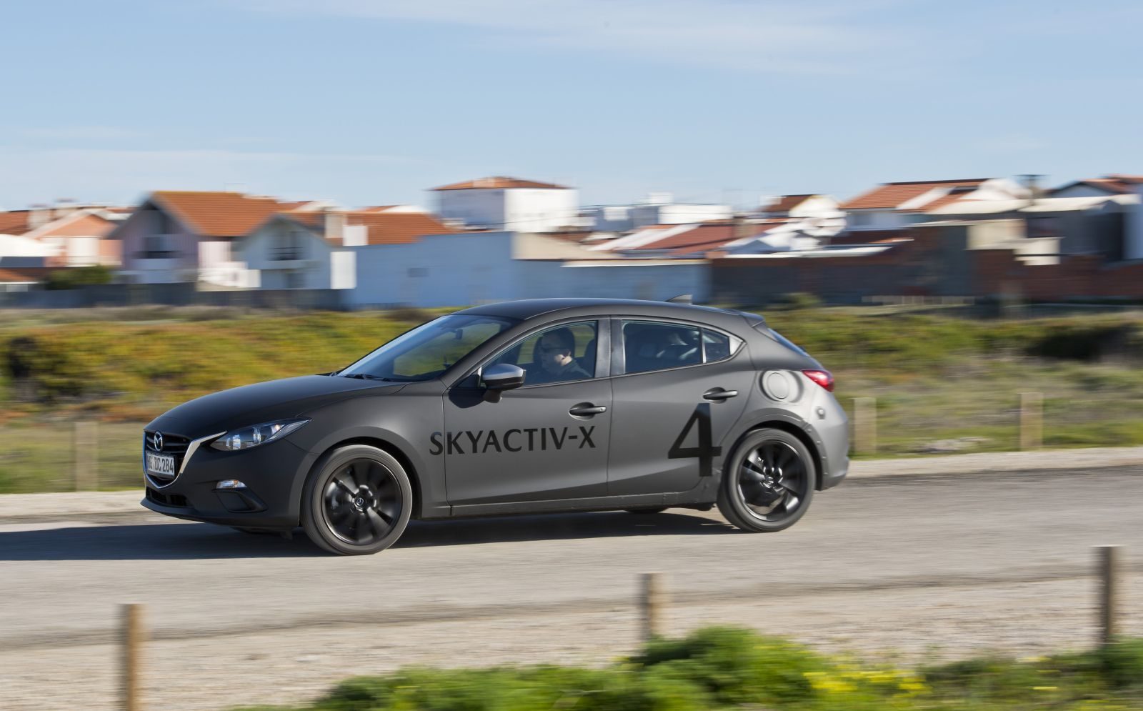Goed, genoeg techniek. Nu willen wel eens rijden. We zijn in Portugal om testritten te maken in prototypes met SkyActiv-X-technologie. We rijden in totaal met twee prototypes. Eentje met een handgeschakelde zesbak en een andere met zestraps automaat. Er wordt gevraagd om voorzichtig met de auto’s te zijn. Niet alleen omdat het prototypes zijn met kostbare technologie onder de motorkap, maar ook omdat de auto’s geen airbags en behalve ABS geen rijhulpsystemen heeft.