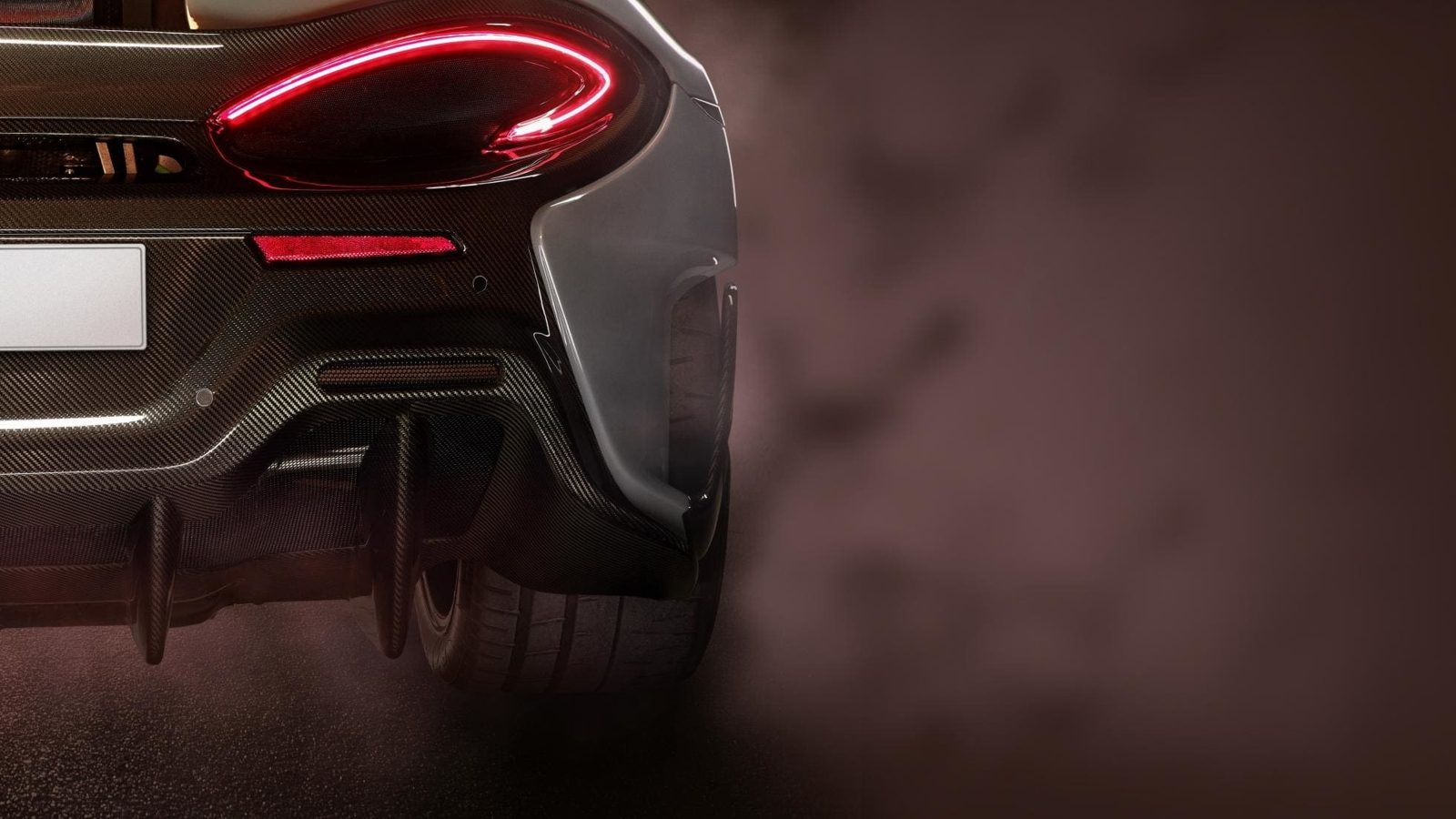 Op de eerste foto van de nieuwe McLaren zien we een deel van de achterkant die sterk leek op die van de McLaren 570-modellen. Op de tweede foto toont McLaren een paar indrukwekkende uitlaatpijpen, hoog op de achterzijde gemonteerd.