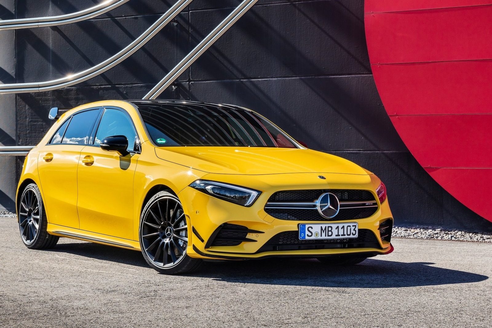 Het voorlopige topmodel van de A-Klasse-familie is lekker dik aangekleed met sportievere bumpers, grotere wielen, maar ook de benodigde sportieve ‘hardware’ zoals remschijven met een diameter van 350 mm vóór en 330 mm achter en een sportuitlaatsysteem met twee vuistdikke uitlaten.